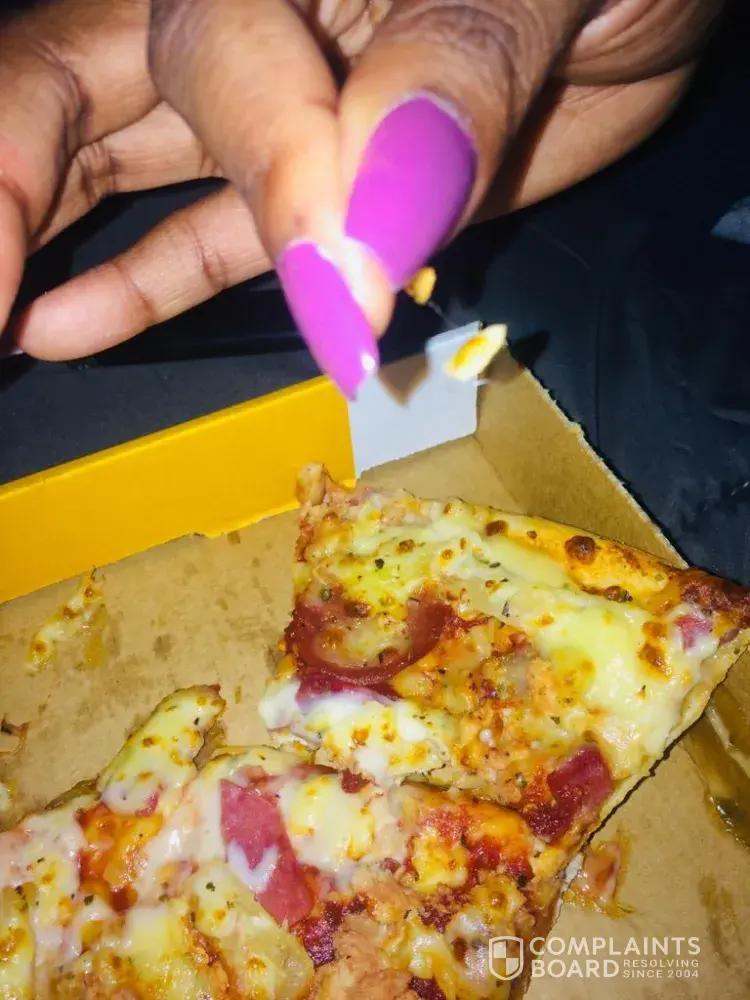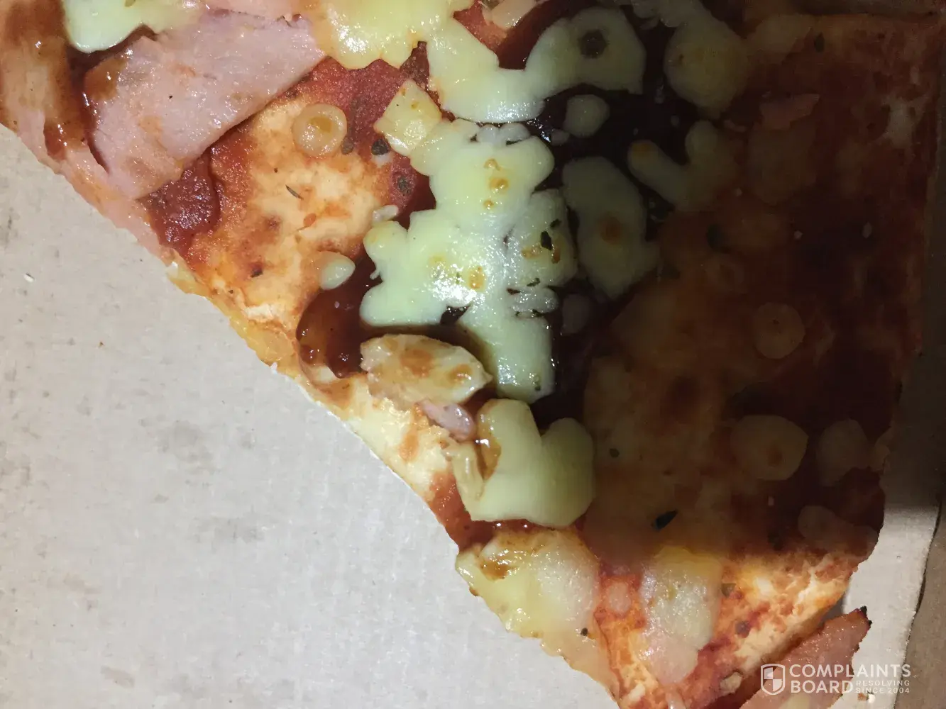 The pizza had pinches of cheese, literally nothing, the base tasted stale and there were no fillings even though I had bought bacon barbecue flavor. In my years of buying your pizza this was very disappointing, I could not even eat it.