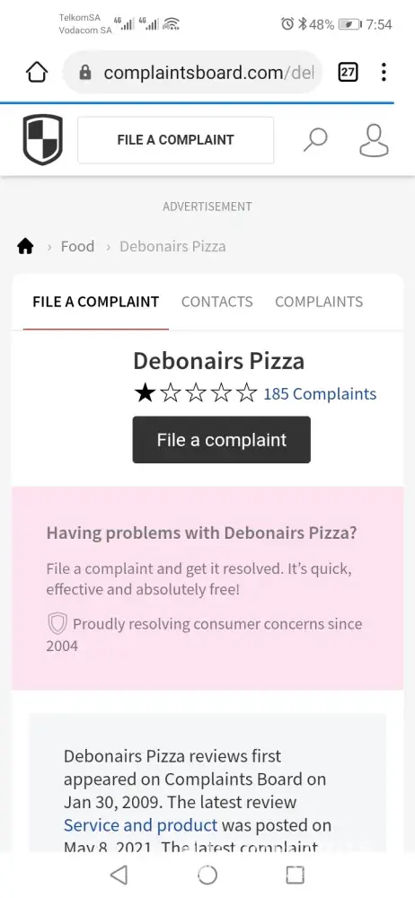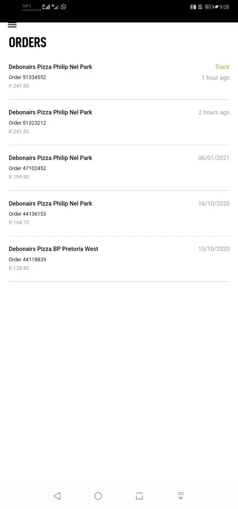 To whom this may concern I would like to raise my concern with the service I received from debonairs Bridge City Mall today I am truly not satisfied. I order a pizza on the double for my kids at about 17:35 and they acknowledged the order. after an hour when I tried to track the order its says the tracking was unavailable Okey fine. I then tried to call but the phones couldn't go through at about 20:00 I checked the order again its says recieved I don't know how so I had to go for option b had to urber eat later on at about 21:10 a guy from debonairs phoned my child answered and the guy requested the child to come outside as I was already sleeping. He requested the child to wake me up. So I woke up and boom its was the debonairs guy with my order when I asked him why he told me that he was busy so he couldn't deliver my order Okey. When I told him that I have ordered somewhere else so what I must do he insisted that I pay for the order since he is here. when I asked him why the order appeared as if it was already delivered he kept quit but wanted me to pay. I payed and when I Che k the pizza its was cold as ice can you guys please attend to my matter since I am not happy with the service I recieved today before its happens to someone else they should have at least notified me. And the pizza was not on my expectations.
