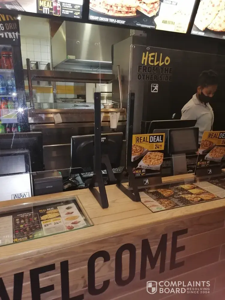 I have bought a festive deal pizza at maponya mall. Rediculus service. Timing to wait was so long after I've gotten from work. 1 hour 30 minutes and the pizza is till not out. Hell no. I will never come here again. I will stick to my reliable pizza competetor for my pizza. Roman's is way better. What a first day of purchasing here and I am. NOt coming again.