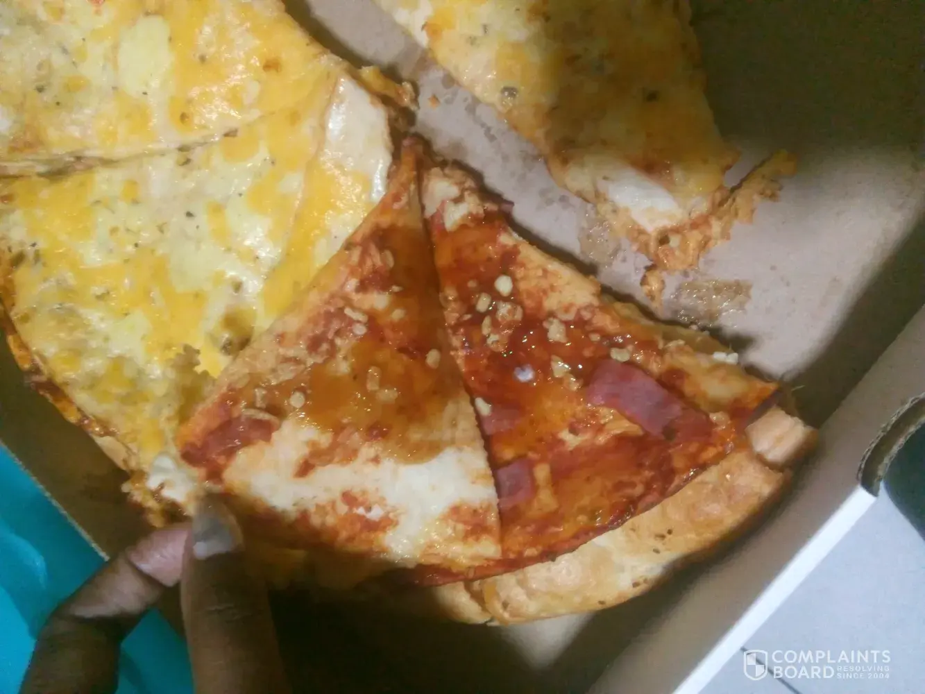 I purchased pizza Friday evening however the pizza was dry not feeding inside. Just for the record this is my second complaint and nothing was done on the previous complaint. Debonair pizza