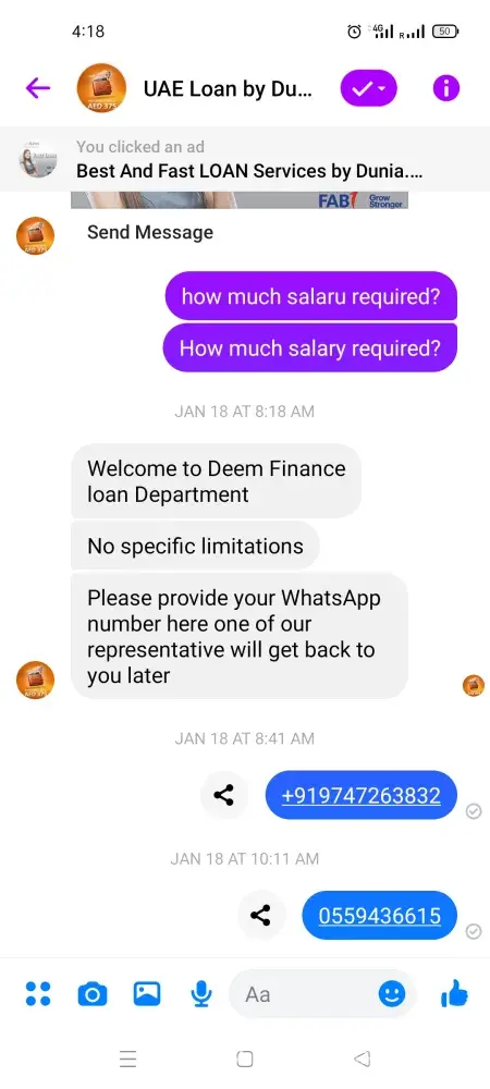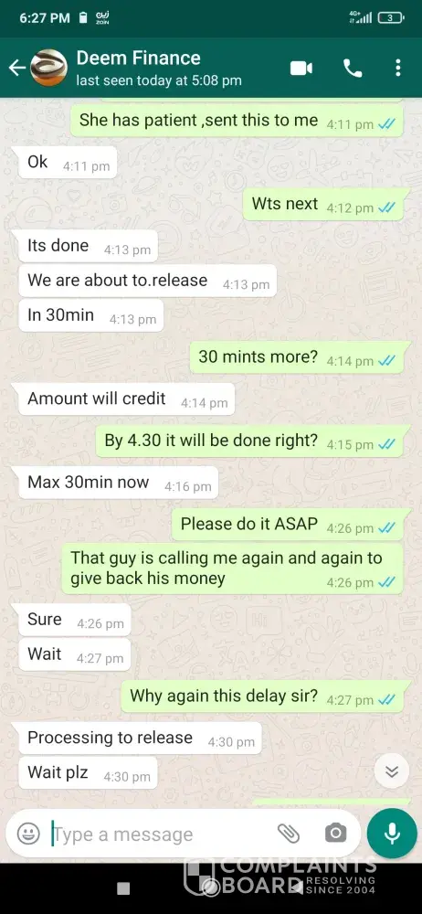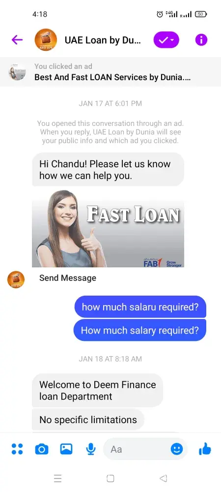 My name is James. 2 days before I saw in facebook for personal loan in deem finance and I shared my number. Then one person His Name Ashish Navnit contacted and given the details for loan. For the statement purpose he told to deposit 2000 dhs and as transfer loan charge 2300 and insurance agreement 1650 we paid..