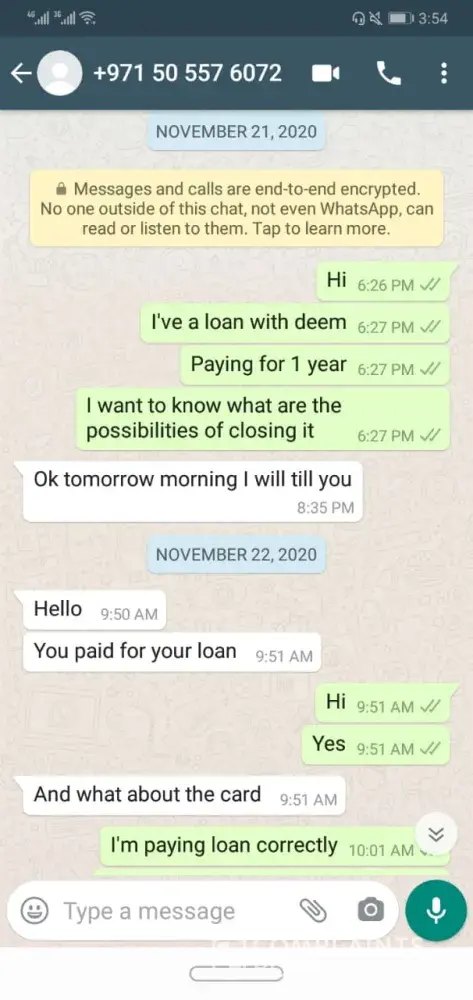 This is my 4th email regarding my credit card settlement and It is also a complaint on the collections agent who contacts me. I have a loan that I have never missed paying in these 1.4 years even when I was paid 50%, I ensured my loan amount was paid. Also, It has been 7-8 months since I had been using a credit card with deem and in November 2020, Mr. Amjed (+971 50 557 6072)contacted me for the credit card & he agreed to give me a plan if I pay 1000 AED for 4 months, last month was my 5th month and due to continued covid situation I couldn't arrange the 3500 AED, hence I asked him If I can pay 1000 AED this month & 2500 next month since He had agreed I made the payment and now this month again he is asking me to pay 3500 AED. Though I requested if I can clear it in 2 installments he was not ready to offer me a proper plan nor a letter.
