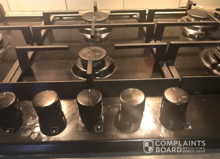 This is now the third time I have had to ask for a replacement of my gas stove dgs150. The stove top has a burn stain which is a factory fault.