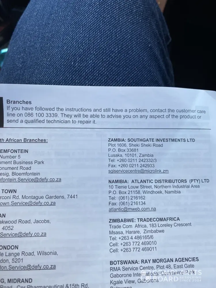 Defy Appliances / Defy South Africa Complaints Page 5 of 19