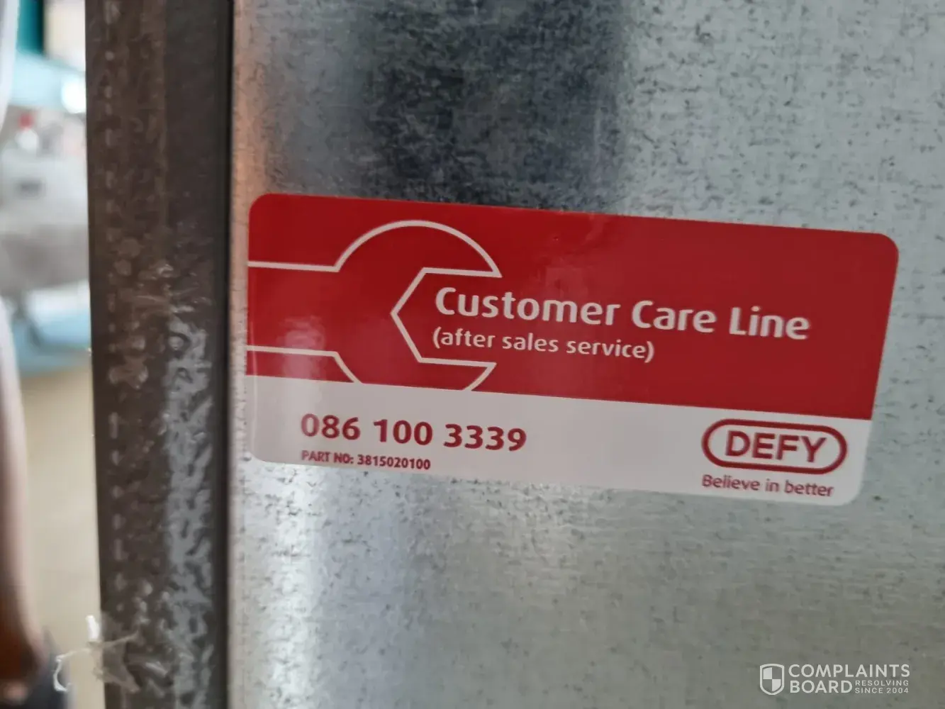 I logged a warranty call almost a month on a new fridge I purchased, that after a month had a fault tripping my mains. it took a week for Defy to send out a technician. The first technician came out did no troubleshooting assumed the thermostat is faulty removed the parts and said he will be back and I never heared from him again. After two weeks of still awaiting for a response from the technician I called the service center again and they sent a new technician by the name TK who walked in with his tool box never opened his tool box and did no troubleshooting to find the route cause of the problem assumed the compressor is faulty and said he will be back with three parts he require the thermostat, compressor and the led lights. I am still witing for him it's now almost two weeks each time I call him he give's me the run arround. STAFF LIKE THIS GIVE DEFY A BAD NAME.