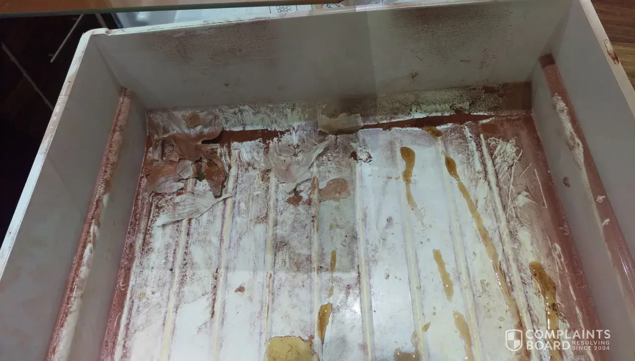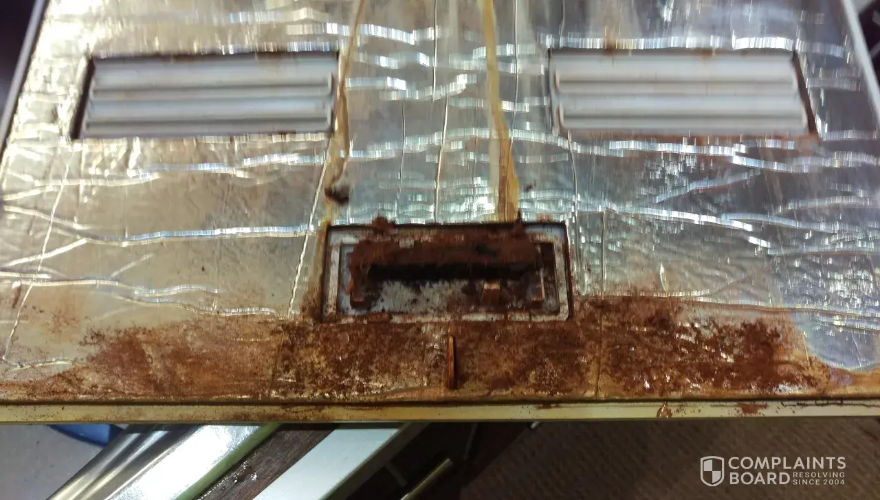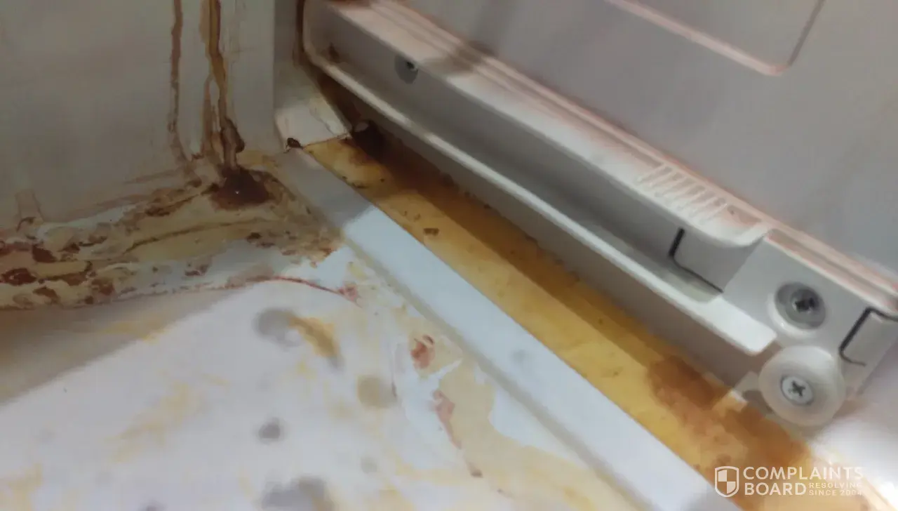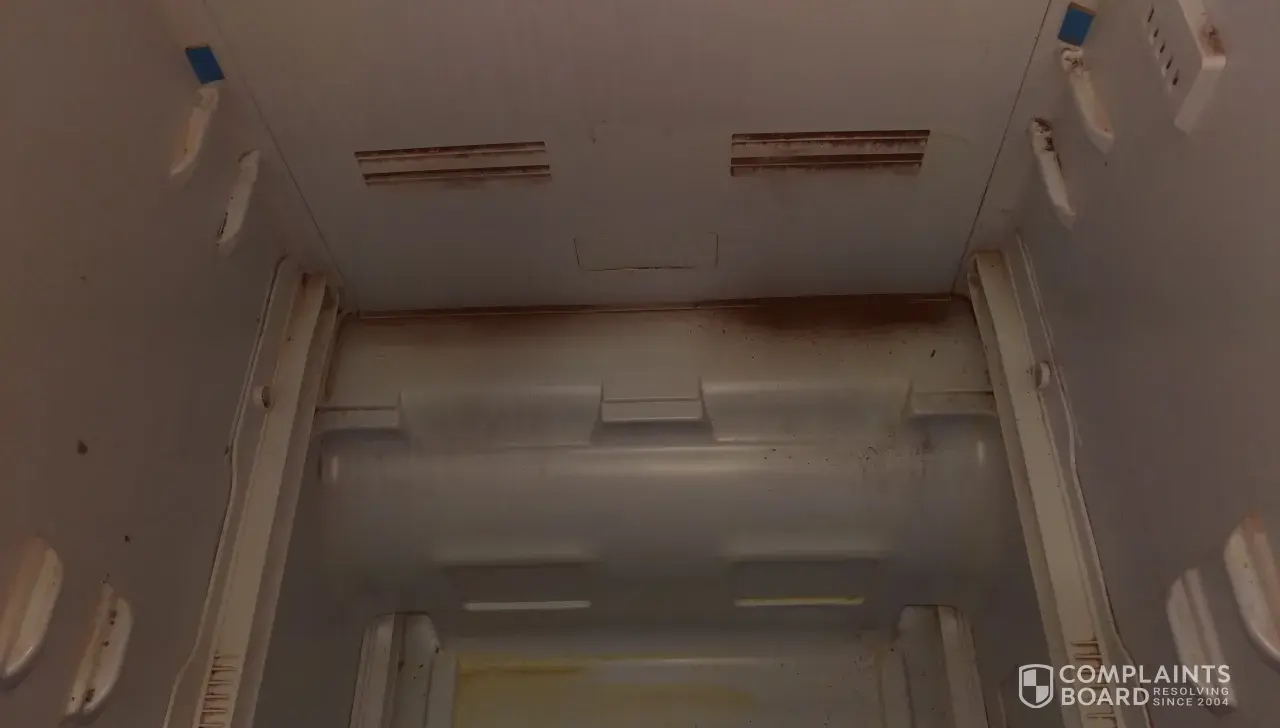 On request, I had to have the fridge taken apart to get to the origin of the rusty dust issue and what a horrendous surprise - the images speak for itself. Unfortunately insurance companies do not cover rust issues.