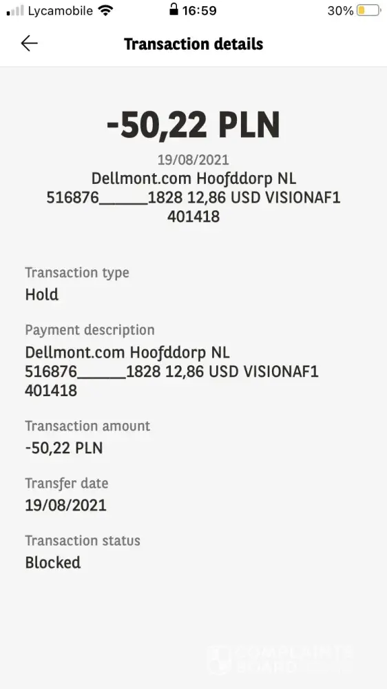 Dellmont Why did you charged from my account 50pln I haven’t done nothing and you charged from my account return my money back