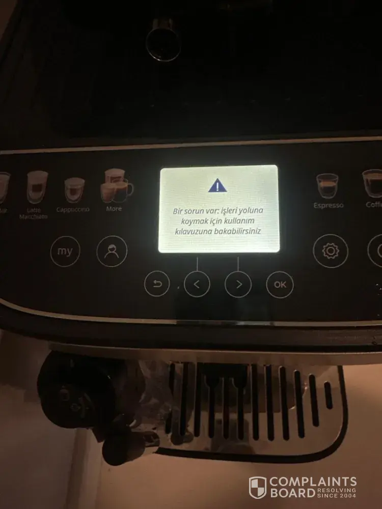 On 10.05.2025, my Delonghi coffee machine (ECAM310.80. SB), which I bought from Teknosa Forum Istanbul store, gave an error after just a few uses and now no operation can be done. When I call customer service, they insist that the product should be sent to the technical service. I preferred the Delonghi brand despite the fact that there are more affordable...