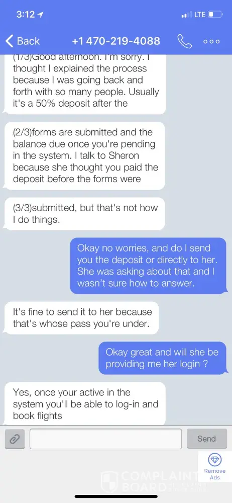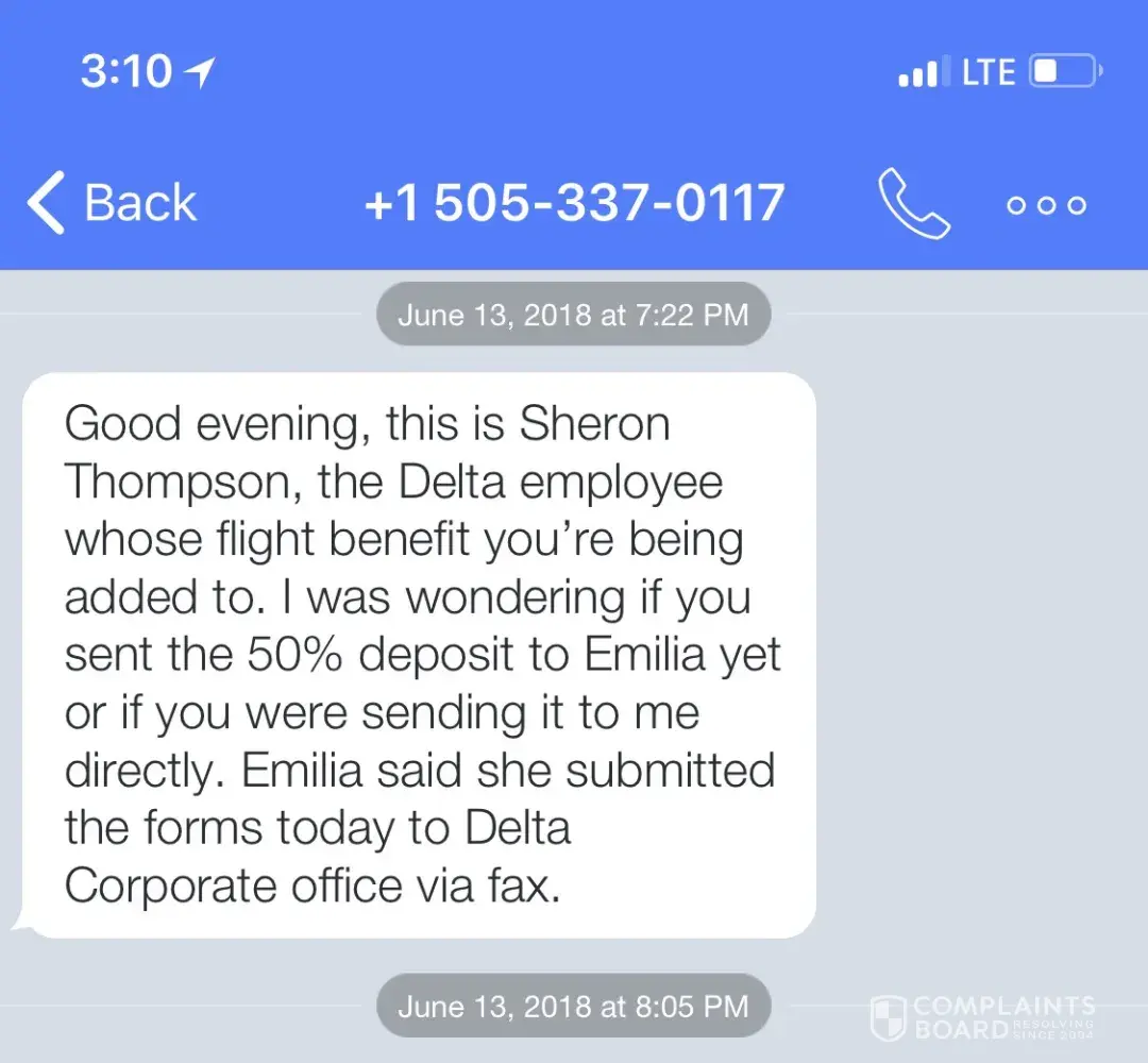 I am reaching out because I am a victim of a companion travel pass fraud, an employee by the name of Emilia Aldridge and Sheron Thompson have both scammed me of $2, 000 promising non-rev travel privileges for the year.