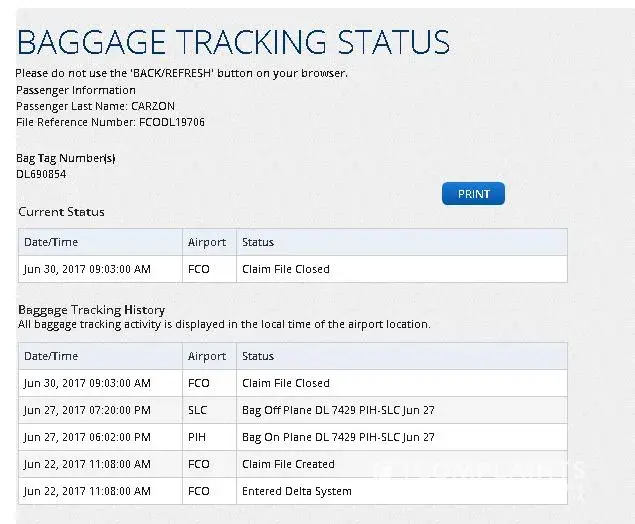 I am registering a complaint on behalf of all four of us. Losing a bag for a day is not uncommon, but to lose a bag for 4 days? for 15 days? to loose a bag completely? It is just mind boggling given all the electronic devices we have at our disposal. Why did Delta schedule a connecting flight to Rome with so little time between connections? Maybe the schedulers of flights should try to be a passenger or a baggage handler.