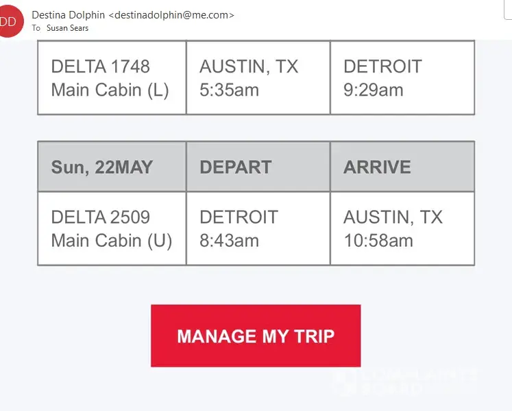 2) Delta canceled my flight and changed it to Monday Morning at 6am out of Detroit. They informed me of this on the May 14th at 4pm.