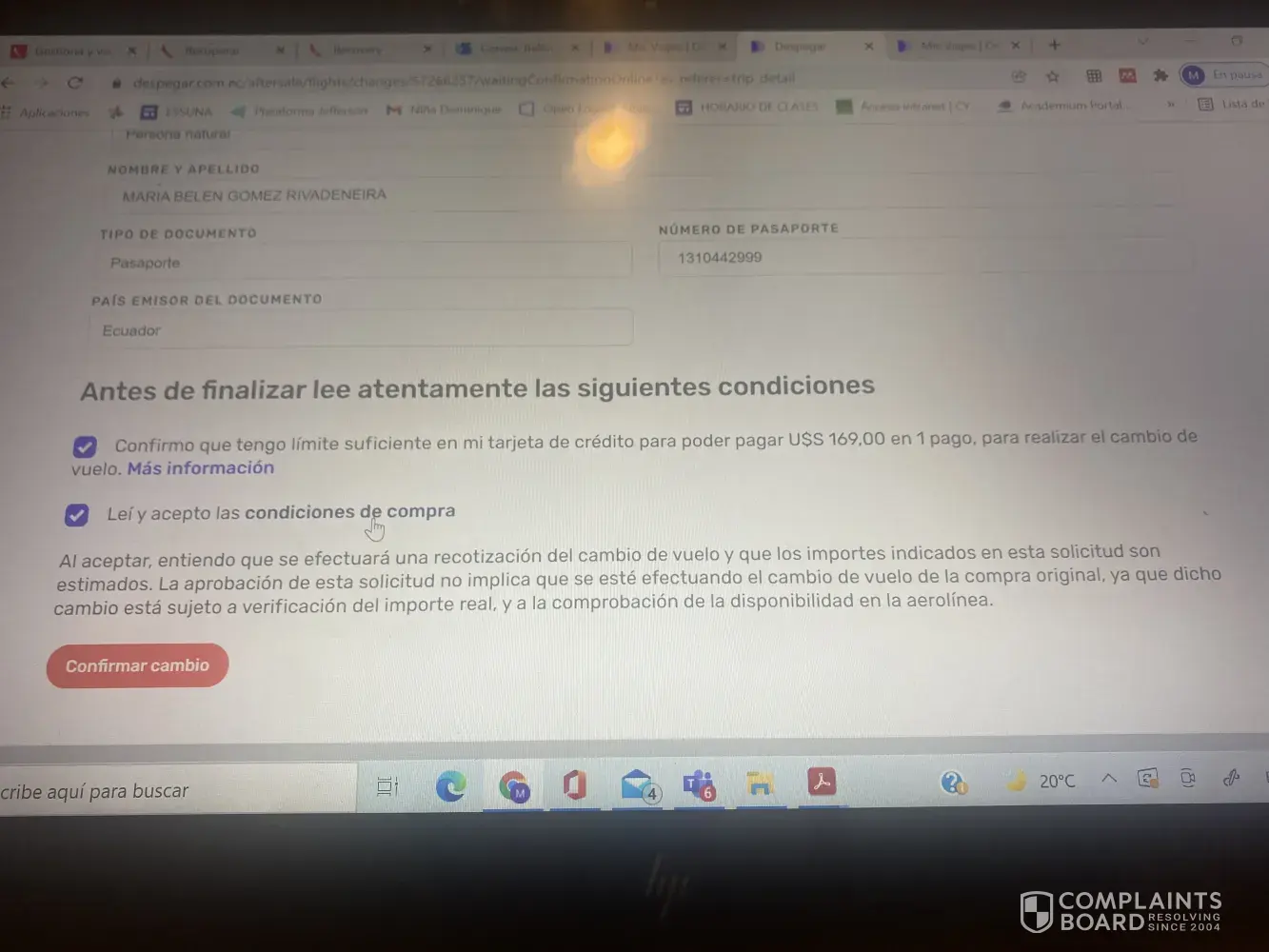 We called twice to the Latam company and they said we have to contact despergar.com because they cannot refund the money.