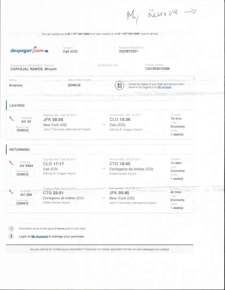 I bought a ticket for my mother in October 2016. From Bogota to Sydney. (booking no. [protected])