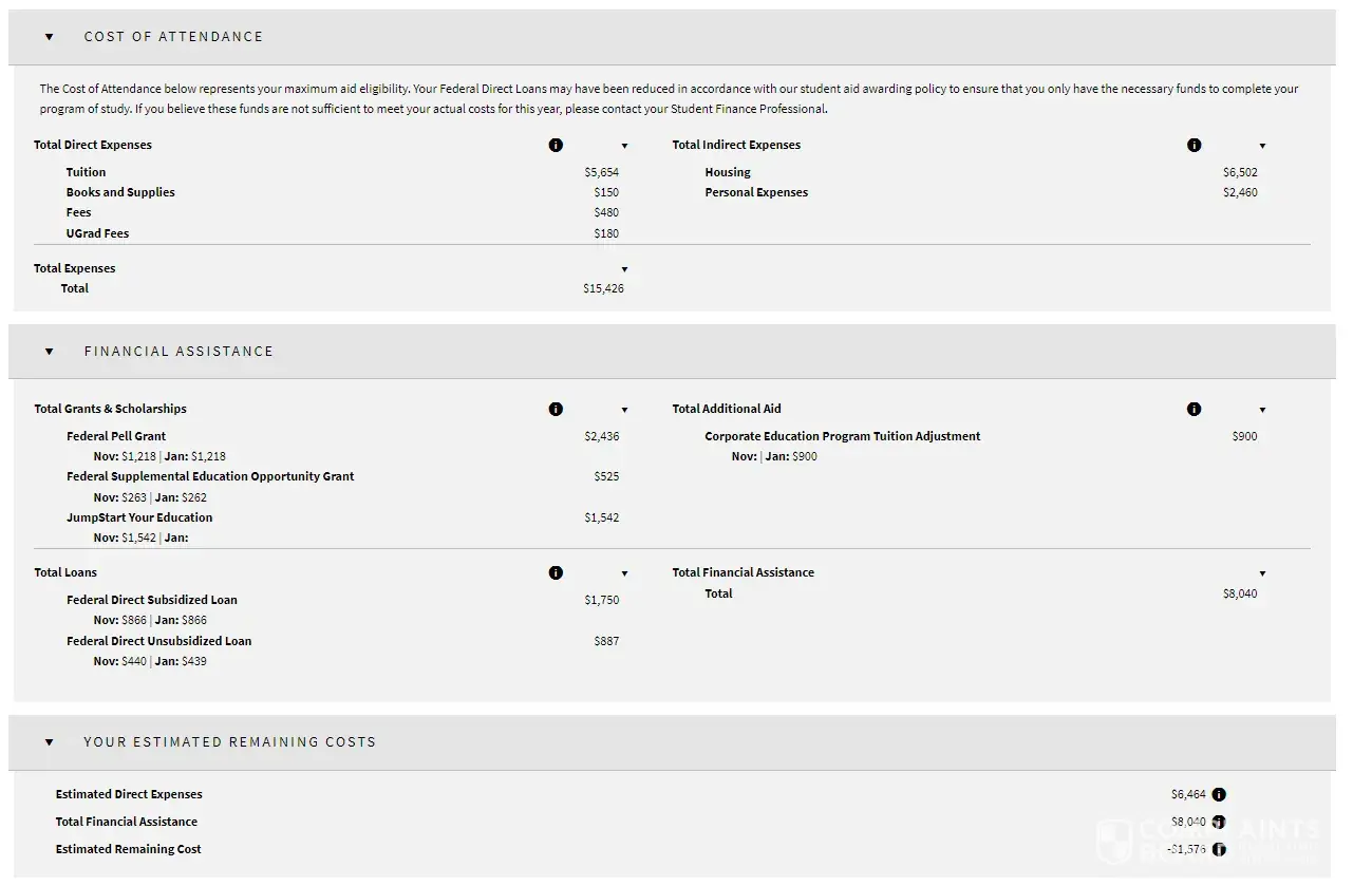 I have been lied to from the beginning this entire school is completely a joke. I would NEVER recommend. Ive been told so many time each semester that my financial aid is completely different than what the person before told me. They also will say they wont charge you out of pocket but that is a total lie! They have charged for me every single class out of pocket! Ive had to request a aid increase to maximum and still these people are asking for over a grand out of pocket. I have seriously had the worst experience with this school i will never return nor recommend ive had several friends enrolling into online college etc and i have just showed them several conversation with professors and the school and thankfully saved them the headache. Lets not leave out last semester a total of 8 WEEKS my professor NEVER responded not even one time! I google and you tubed the entire course when i had a question could never get any help!
