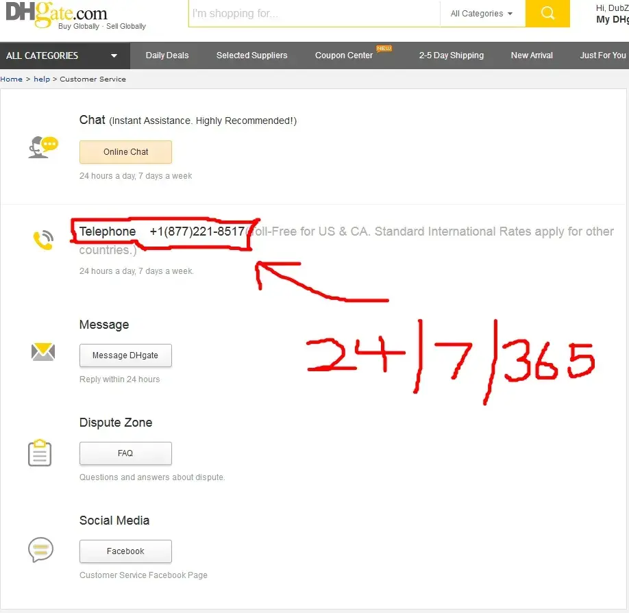 dhgate customer service number