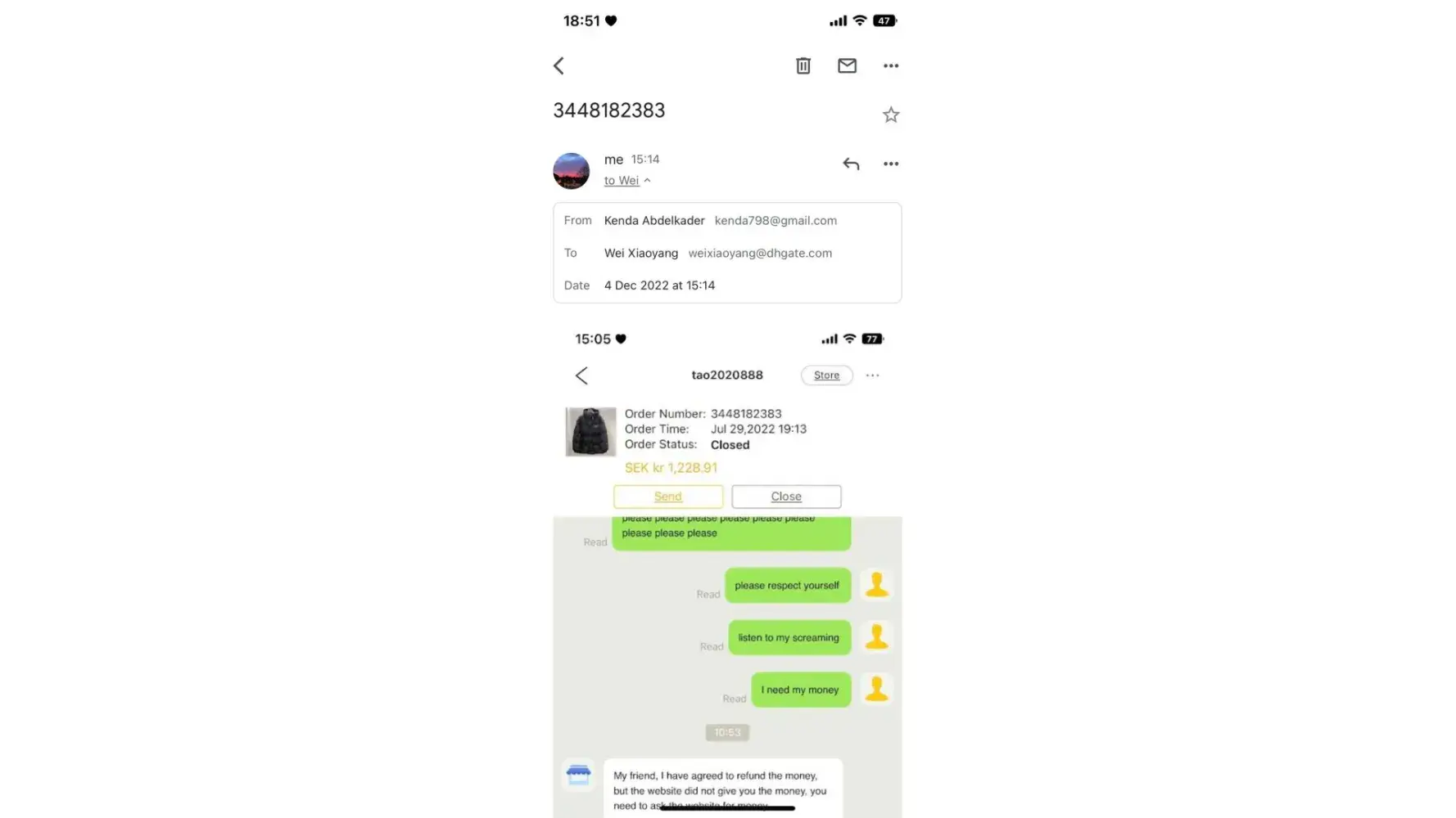 Also he said if I don’t do that I will have to pay for customs and he will not refund me, threatening me!