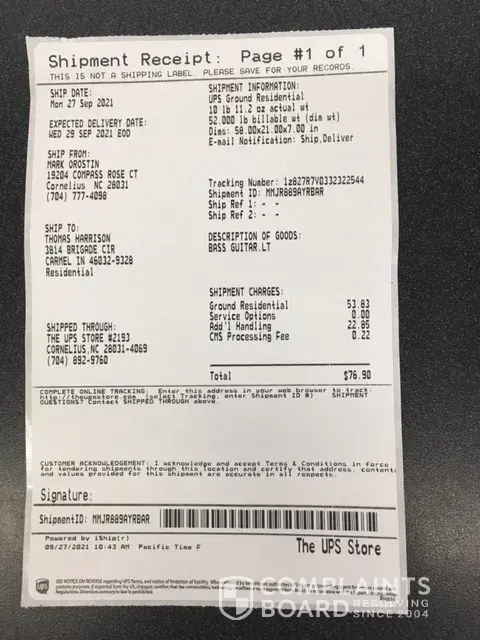 -9/27/21: I shipped the Bass to Tom Harrison. Cost: $76.90.