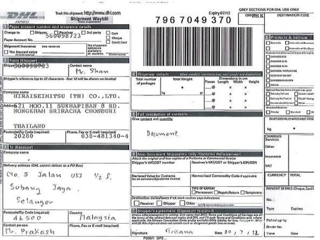 I am a Malaysia who is working in Thailand. Recently ( 20/7/12 ) I sent some documents to Malaysia using a courier service, specifically DHL. But until 27th of August, the documents haven't reached destination ( specifically to Subang Jaya ). When I checked at Thailand side, they confirmed the documents been sent to Malaysia. And when I checked at Malaysia side, they told me that the documents were still floating due to unknown address and I passed them the mobile phone no. of the person who supposed to receive those documents.