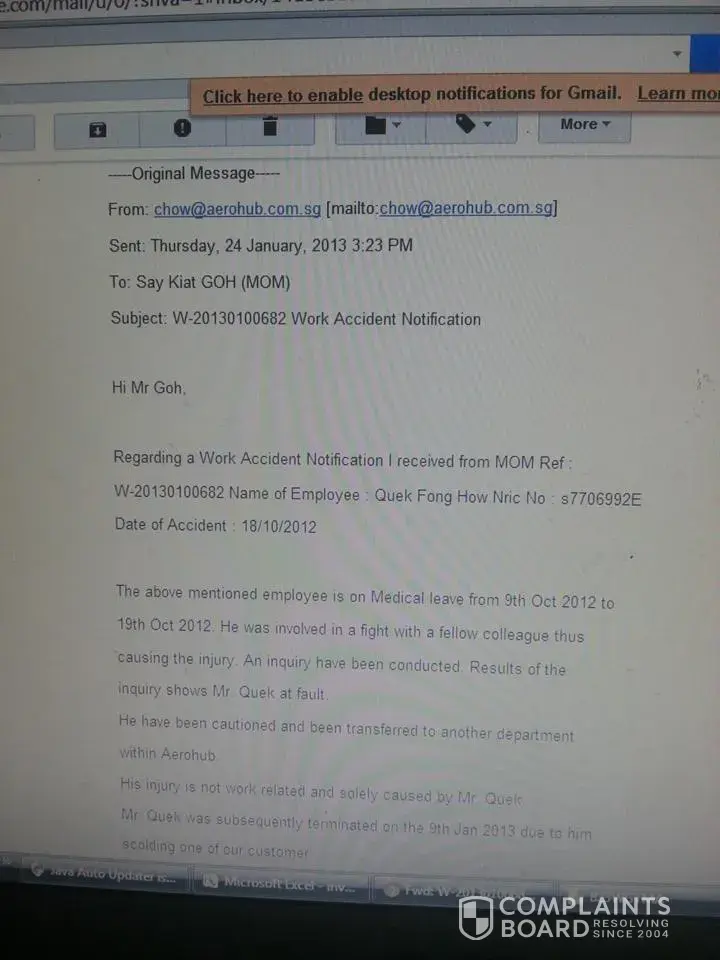 Attached below is the finding from Ministry of Manpower and i intend to pursue the matter further if my concern is not addressed to my satisfaction. Documents of my police and medical reports has been submitted to MOM for their investigations. All I expect is fairness as Singapore is built on the foundation of justice, equality and fairness irregard of race and religion. My earlier email to the Managing Director office sounded like a dismissal in their reply as no action is taken to address the matter. I am really disappointed by their lack of empathy for all the contributions i made to DHL.
