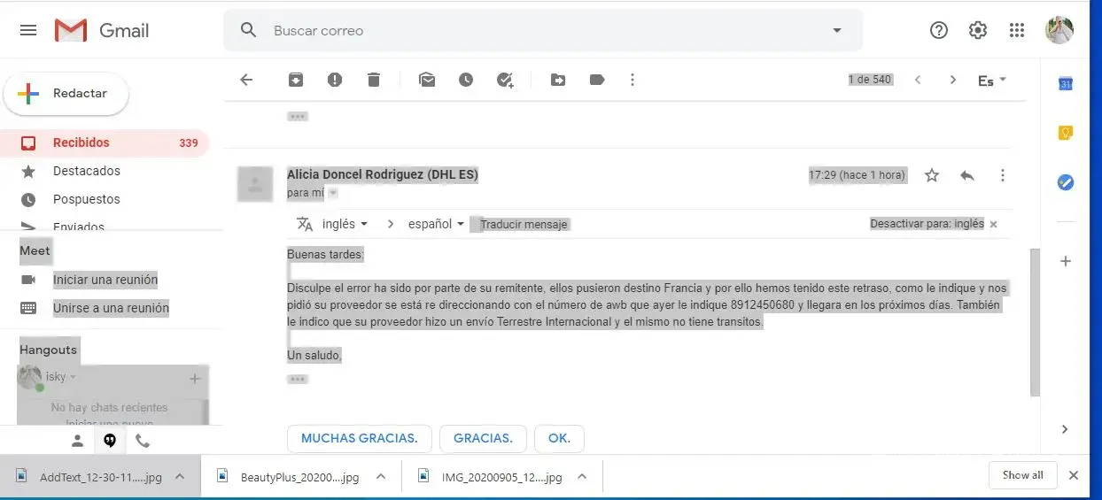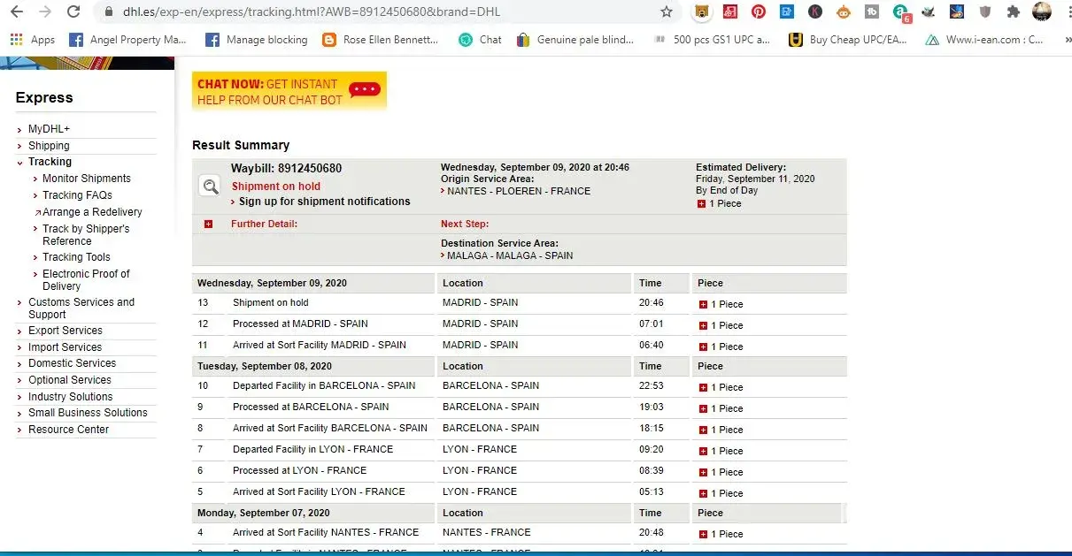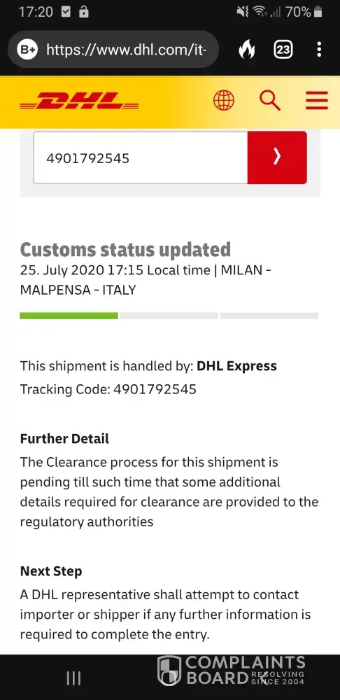 The mentioned awb reached cayman islands on 27th of july. The dhl did not bother to contact me untill I contacted them on last week of august. After contacting them repeatedly they ask me to mail the supporting documents which I have been doing till today i.e. 28th sep 2020. Again today when I called mr allan he says he did not receive the payment proof hence I sent again and for the third time today my mail is being rejected by all of them - misha, omar and allan.