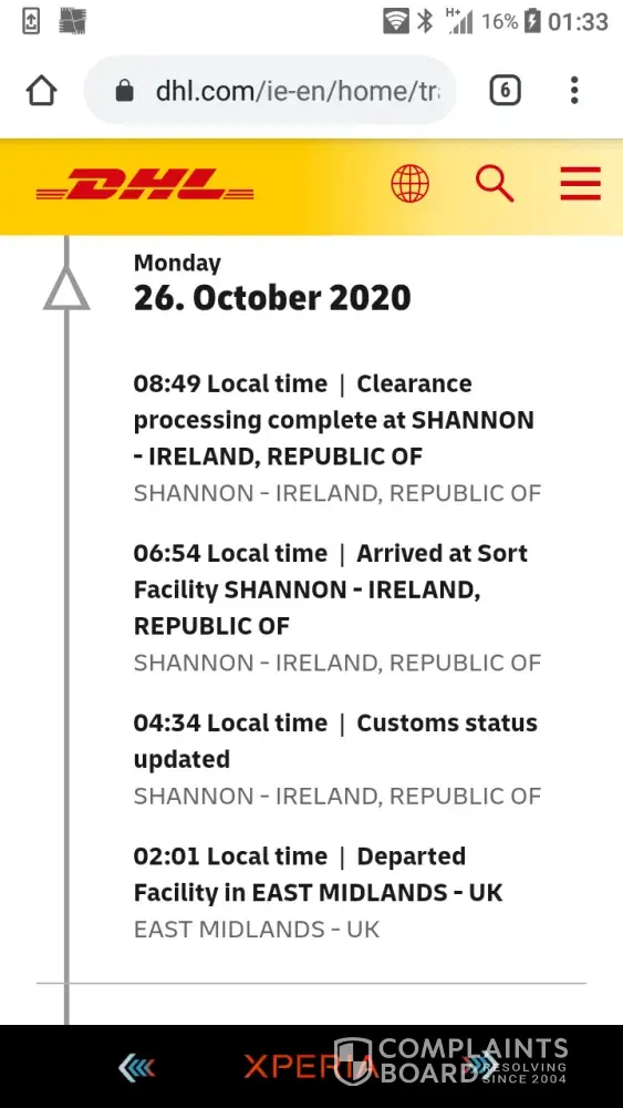 Dhl failed to notify the seller or myself that there was a customs charge and hold on my package for €48 which is why incorrect information was being given on tracking and claims I refused delivery, had to speak to someone in Dublin and India to find out