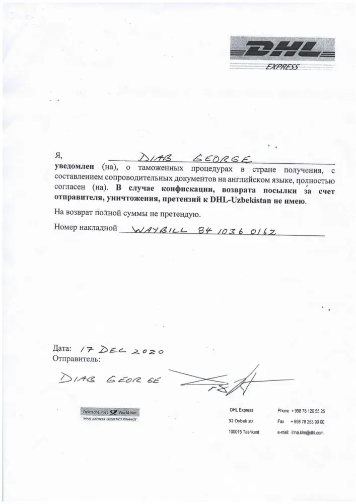DHL Express AWB [protected] customer no [protected] e.mail [protected]@hotmail.com