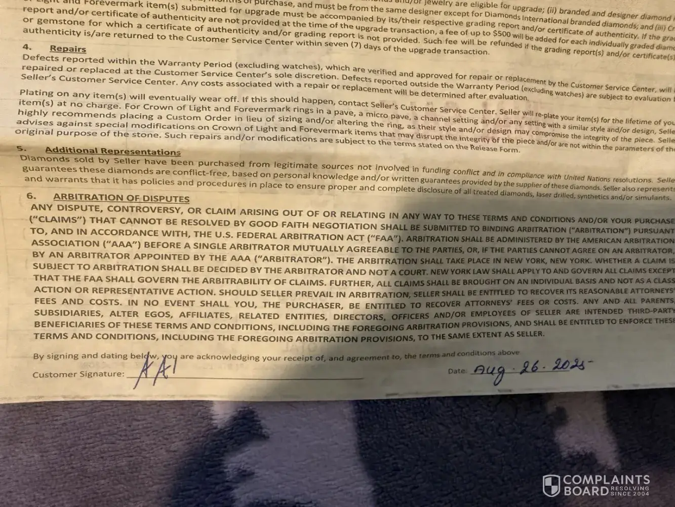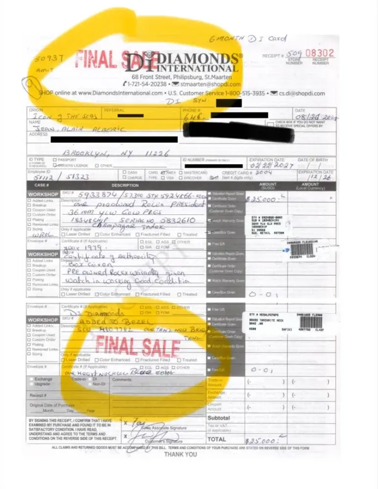 Read full complaintTitle: diamonds international – rolex purchase with undisclosed “final sale†terms