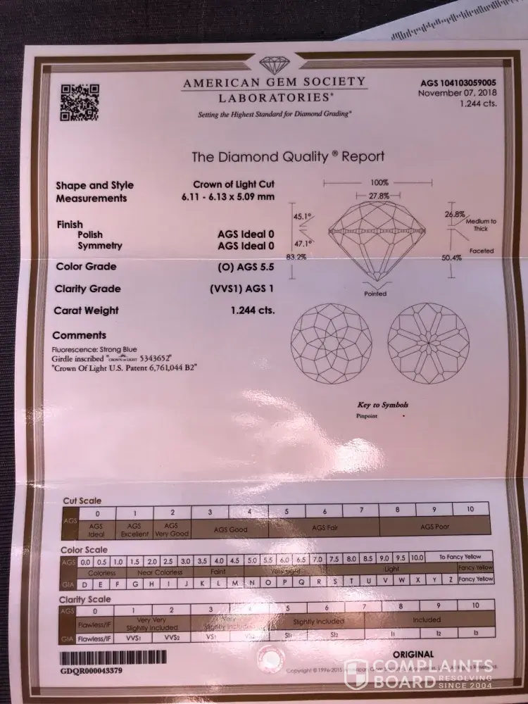 After corresponding with Kerry Clare about what happened and that we would like to acquire return instructions, we were emailed a response implying that we are lying. We feel that this is not only extremely unprofessional, but feel that D.I. has shown unethical business practices. D.I. has refused to take the ring set back unless we take the ring to “their†specially trained appraisers who work directly with them and has been trained by D.I. on how to evaluate, grade and place a value on their Crown of Light stones in the U.S. They stated that the only allowance they would honor for us to cancel our contract was if the value does not come in at a minimum of $80, 000 by their trained appraiser since we were able to get the letter we insisted on before leaving Cozumel. We feel that requiring us to take the stone for appraisal by D.I.’s appraiser is a conflict of interest. We do not want the ring and do not feel that we should have to pay for an appraisal as we have the right under the 72 hour FTC Cooling Off Rule to cancel this transaction and return the ring set. However, we have consulted with an Attorney who is handling a class-action case against Diamonds International and they recommended that we go through with an appraisal by a highly respected and recommended GIA certified appraiser in our area to prove that the stone is over-graded. We had the ring appraised and the value came in at $28, 500. This appraiser was a certified and highly recommended GIA appraiser and is the third party to value the ring at between $26-29, 000 since returning home.