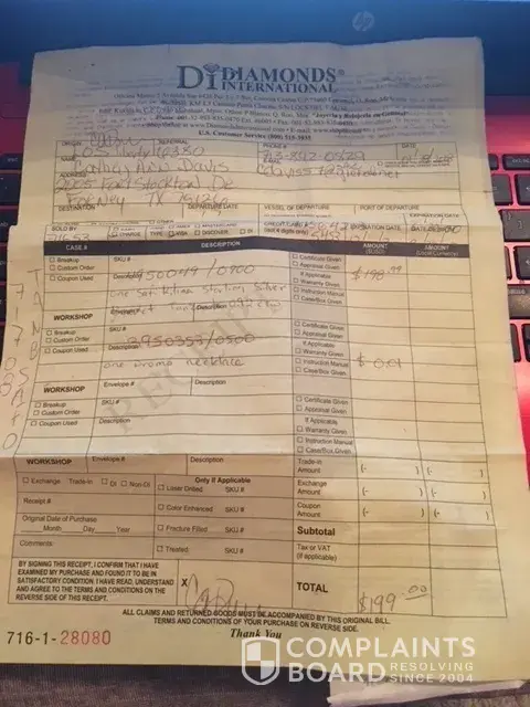 We request the cancel of the purchase but it was denied. After that, we tried to get an appraisal, with a local jewelry store. I manage to get an appraise which was 1/4 of the price charge on us. But when I was leaving the store I got a callback. I was ask to return the document and they could not longer appraise because the price was the one I was charged from DI. The store manager told me that DI has secretly sent an email with instructions on how these so-called diamonds are to be appraised. This is pure manipulation from these people. It's very hard when only on buyer complain. I was looking for anything that I could use but I could not find it. If this a lawsuit its legit I will like to have more information and maybe gather a big group of victims to fight back and get it right.