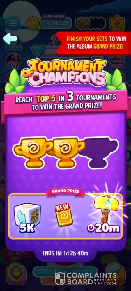 I really love this game and I’ve been playing it for a while it’s fun to play I’ve had a few people that I invited join which I only got my rewards for my first one and not the other two. I agree with one of the other reviews that it’s hard to compete with some of them to win any prizes because they buy days they cheat there’s always a bunch of them on there that say they can get free days from somewhere so when they’re getting all those free days we don’t have a chance in the tournament I can hit a tournament when adjust starts get my first rolls and somebody’s already at the top with 1000 so not fair to some of us that don’t buy stuff. I’ve had a bunch of things that I haven’t gotten my rewards for and I’veSent emails and never got any of my rewards I got a couple of responses in my email but no rewards to make up for what I lost. There’s got to be someway to make it so that we can get more days quicker After spending 25 million coins today I got absolutely nothing nothing no new regular sticker no gold sticker no nothing it’s ridiculous that you have to spend that much and you get nothing you guys need to do something better to make this game a little better for some people