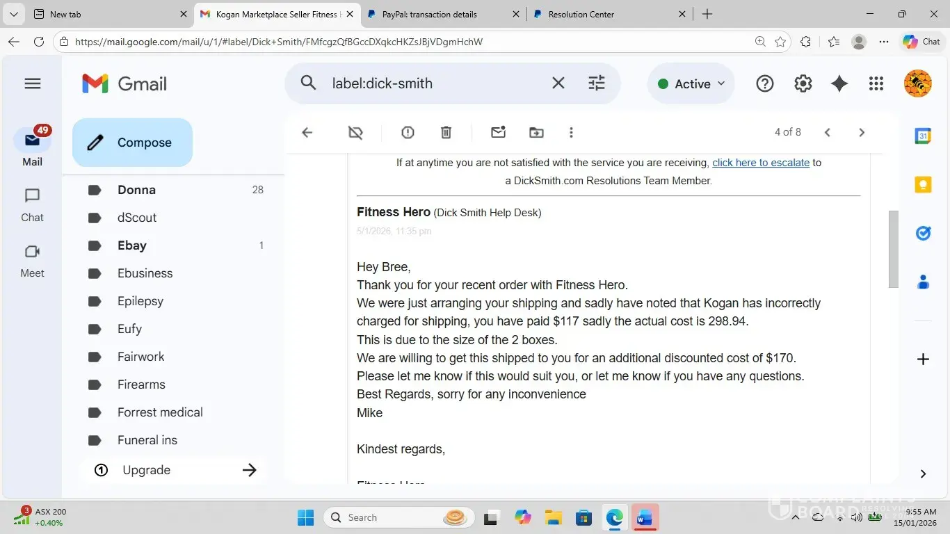 Annual subscription on 25/1/2026 of $341 .19 via Paypal transaction has been referred to NAB fraud department we are waiting for a response from Dick Smiths resolution department before presiding further