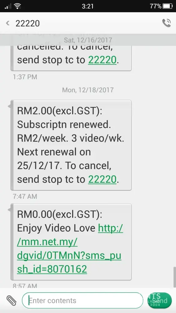 I received the renewal message every 3 to 4 days and it is really annoying. I even send "STOP" to unsubscribe due to ridiculous charge but no response.