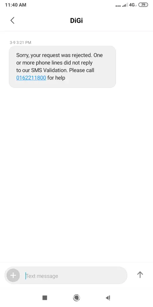 Sorry, your request was rejected. One or more phone lines did not reply to our SMS Validation. Please call 0162211800 for help "