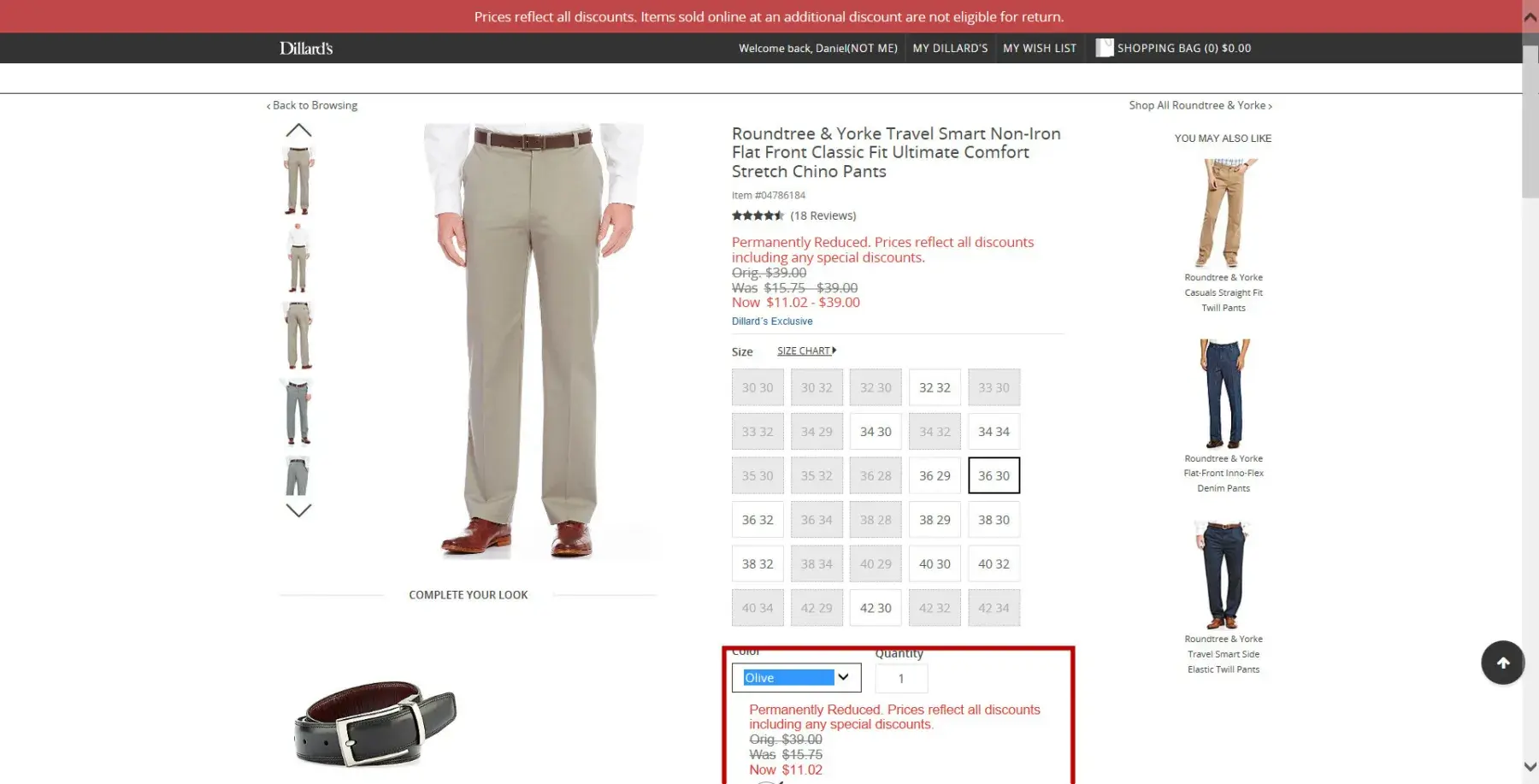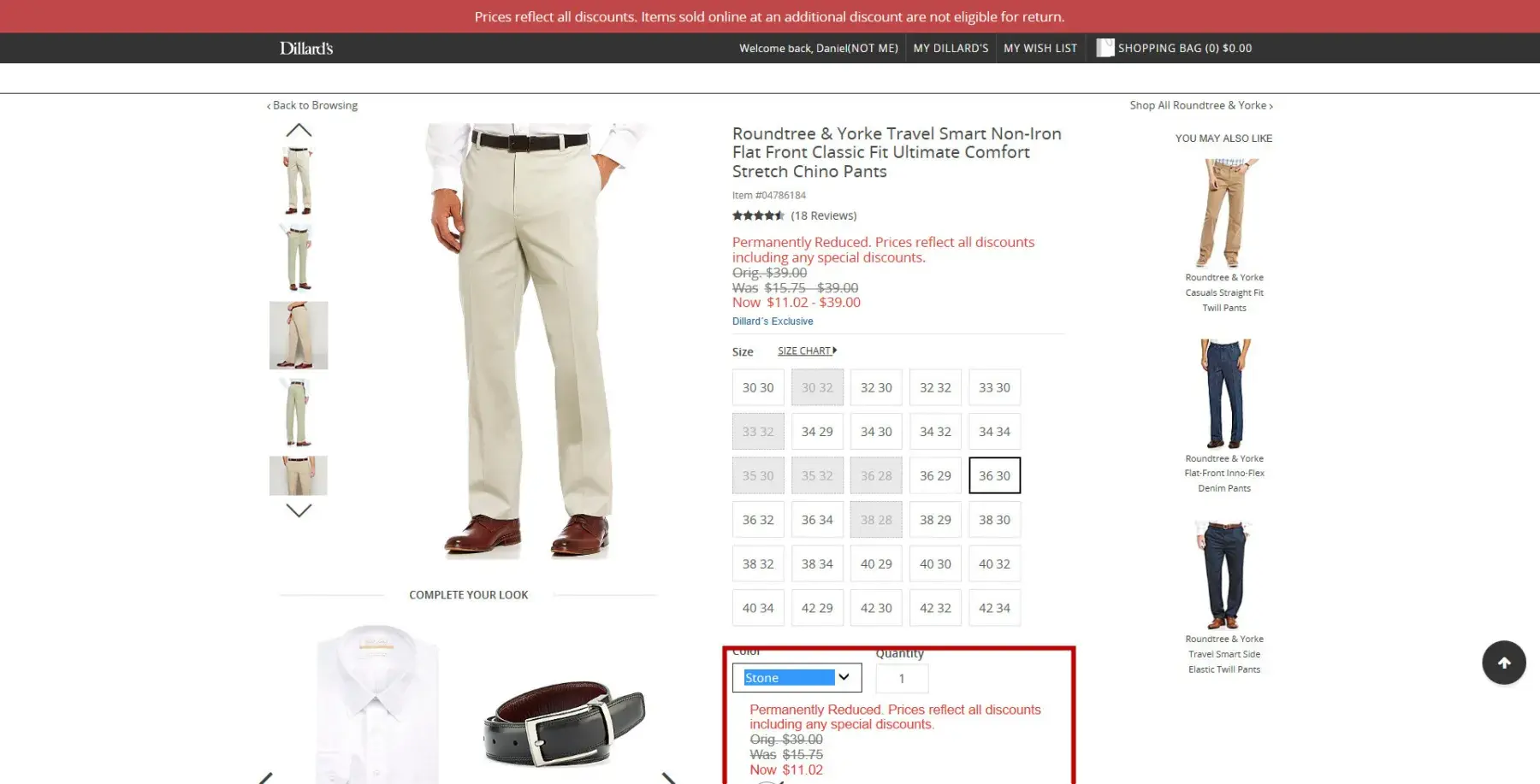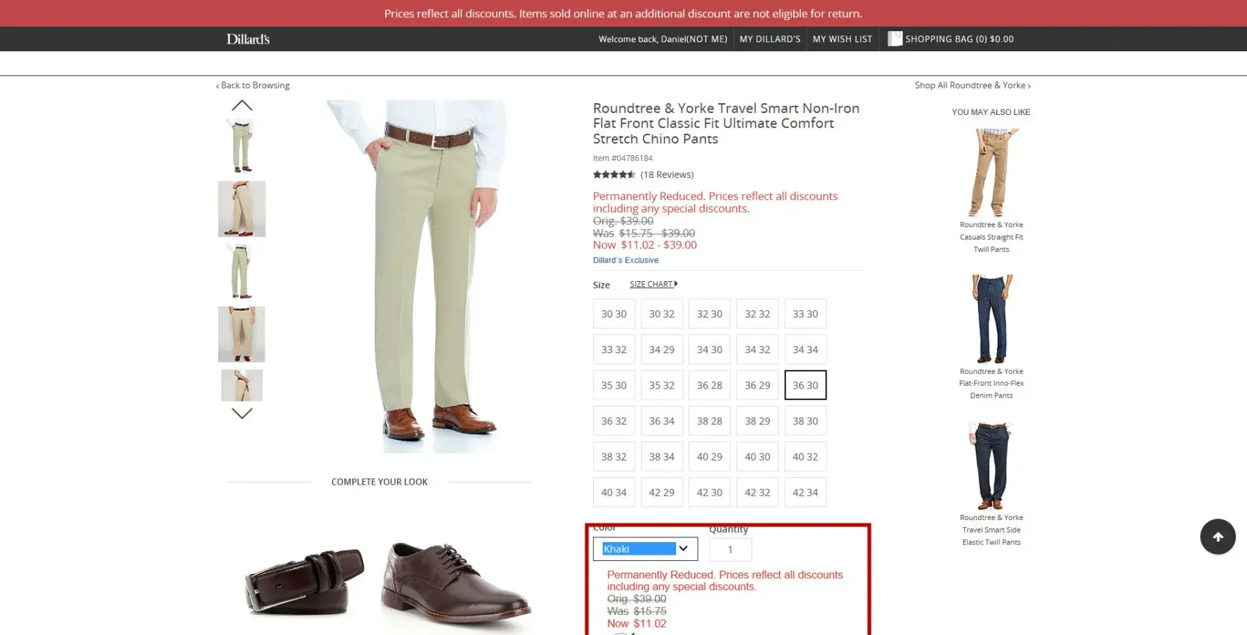 During the week of june 25, 2017, I purchased on-line 7 pairs of roundtree and yorke travel smart non-iron flat front classic fit ultimate comfort stretch chino pants. colors, item #s, and skus were as follows (see order [protected]):