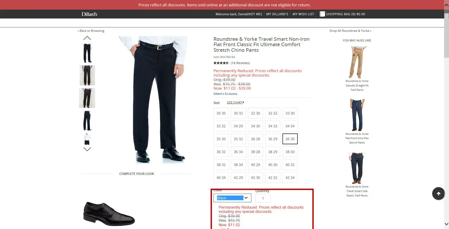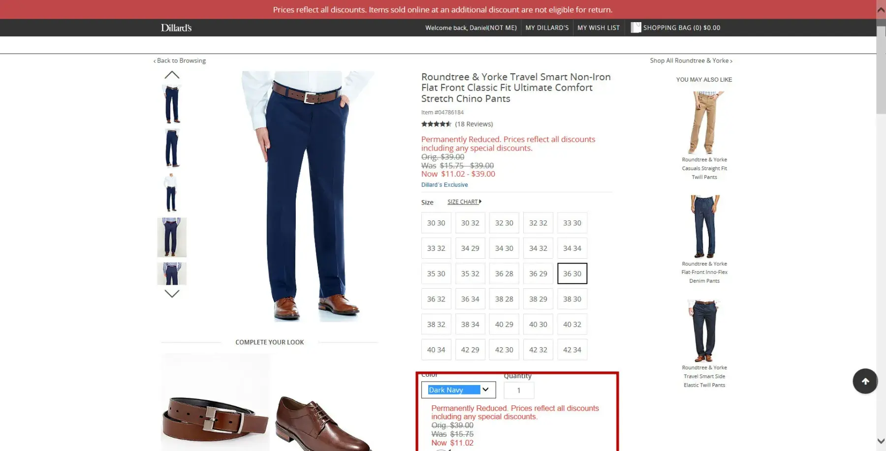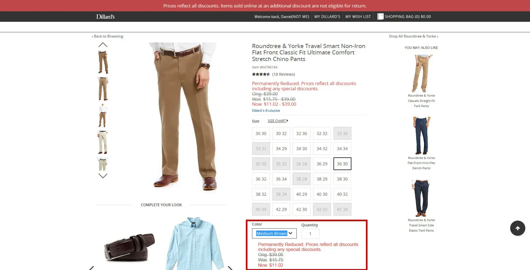 During the week of june 25, 2017, I purchased on-line 7 pairs of roundtree and yorke travel smart non-iron flat front classic fit ultimate comfort stretch chino pants. colors, item #s, and skus were as follows (see order [protected]):