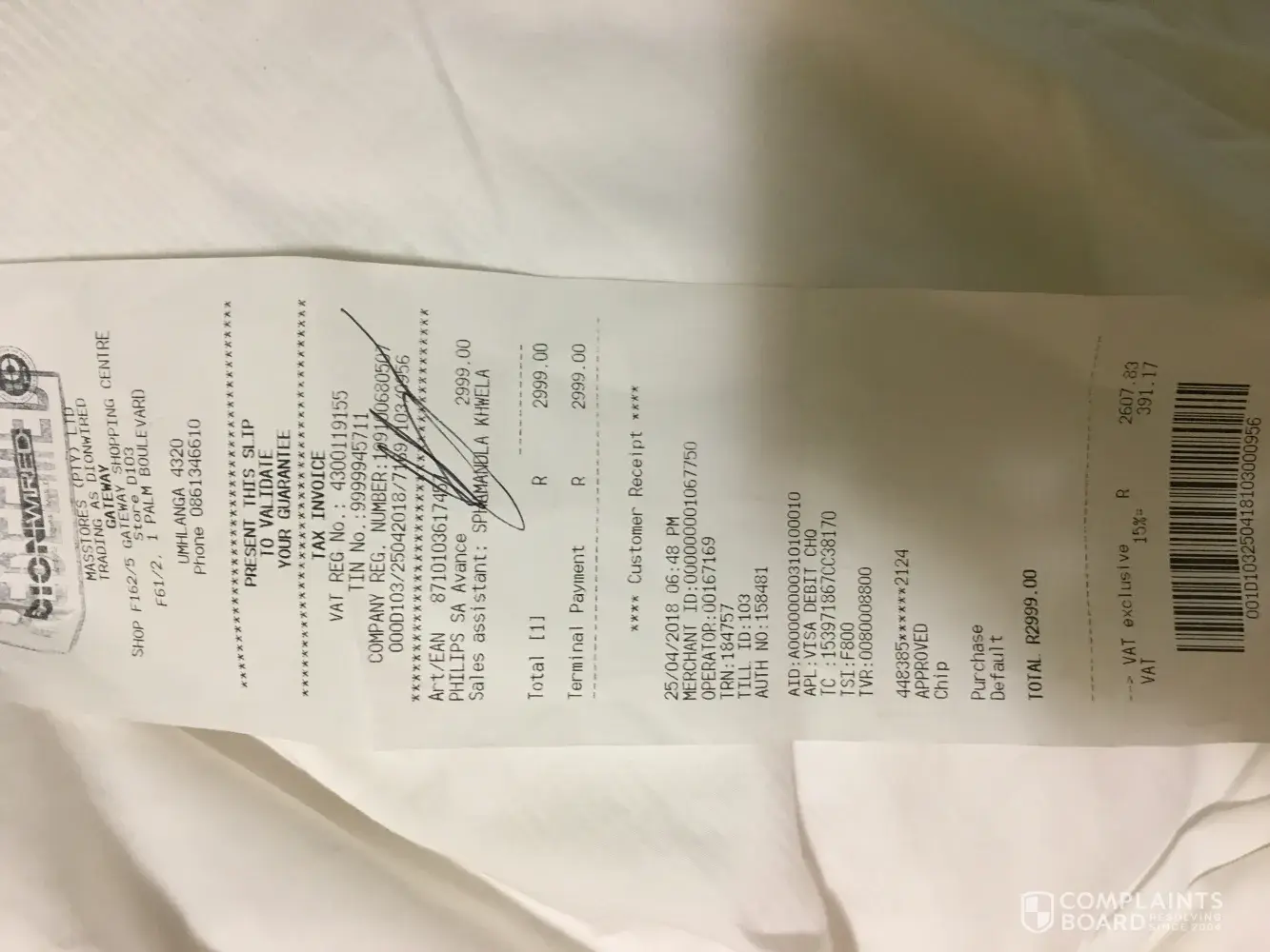 Bought microwave June 2018. Has been giving problems of and on since February 2019, eventually took it in to Menlyn branch. Did not have till slip however provided proof of payment by way of bank statement. Had to wait half an hour for somebody to attend me only to be told that they will not accept the microwave without proper till slip. This they can obtain but it will take 3 days. Then they will phone me and I must bring microwave back. I live 50 km out of town, I do not drive in every day. I do not understand why I could not book the machine in whilst I was there? This means another unnecessary 100km round trip! No other shop has ever been this unwilling to accomodate me. If it was this much trouble just to return an item I shudder to think how the rest of the process is going to be. I can understand why I did not see any other customers while waiting for 30 minutes...