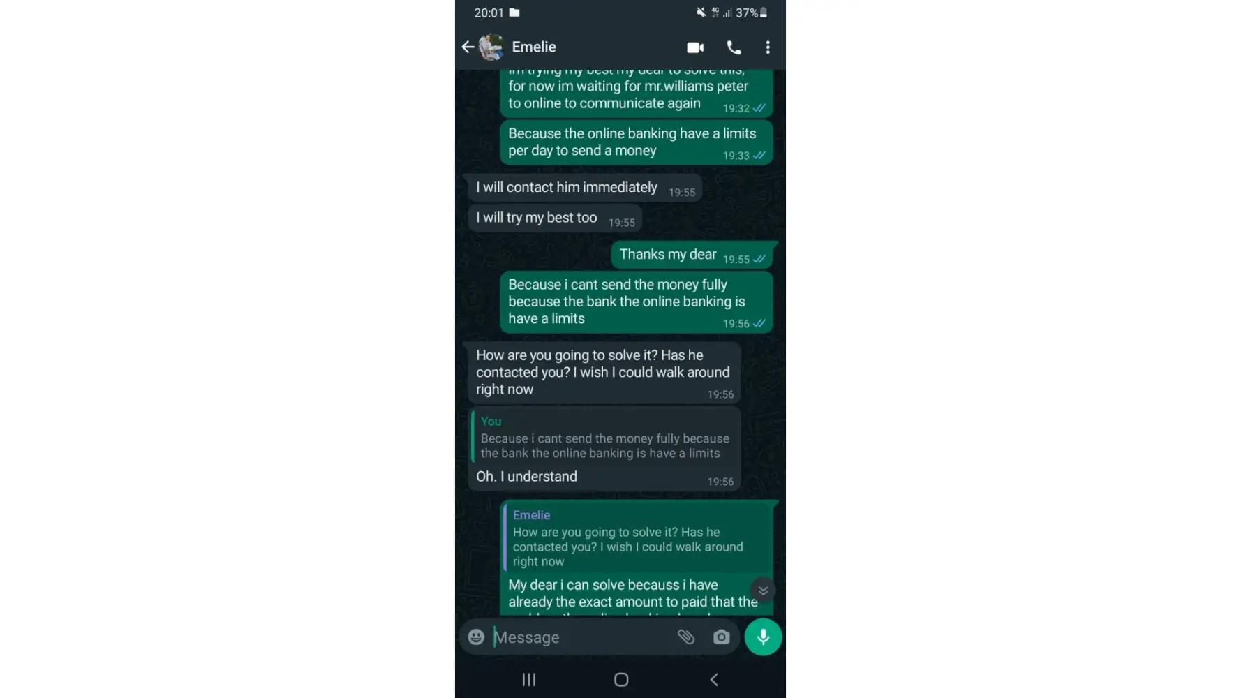 P.S.: His English was consistently broken as well. Eventhough he claims that he was born and raised in US and is permanently working in the UK. And he would type messages to profess his love in form of poetry. Totally not credible.