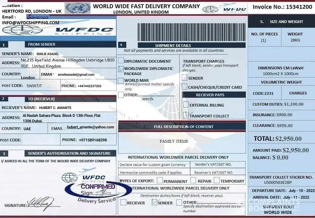 MCambodia et 271ame is Jamelia Frederick. I am from Trinidad and Tobago my friend send me some electronic items from Afghanistan through csaexpressventure and now it's currently in Cambodia international airport phnom Penh. I. Track it when I recognize that it on hold the company csaexpressventure.com sent me an email stating that I need to send them US 652 to insure that the package reaches me and that i should send the money via Western union to