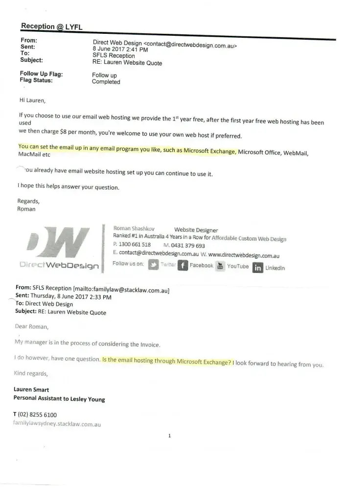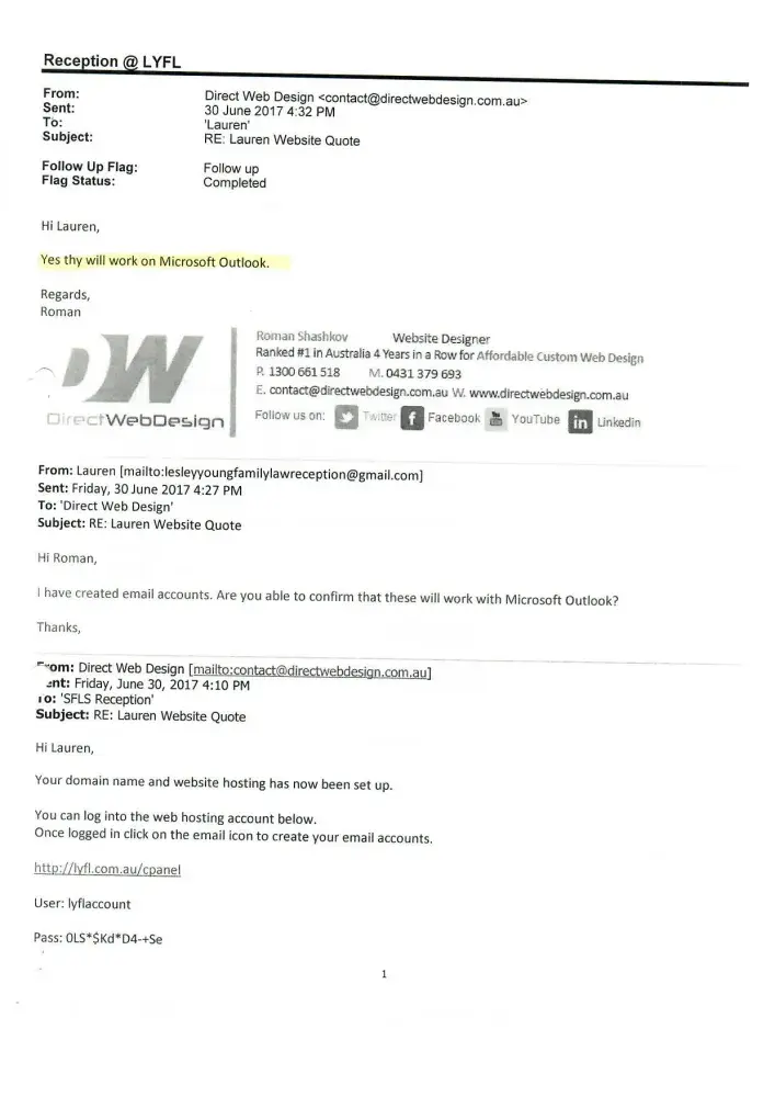 I have not heard from the complaints department regarding this issue and I would be silly to post my webpage at this time while Direct Web Design still have access to the site.