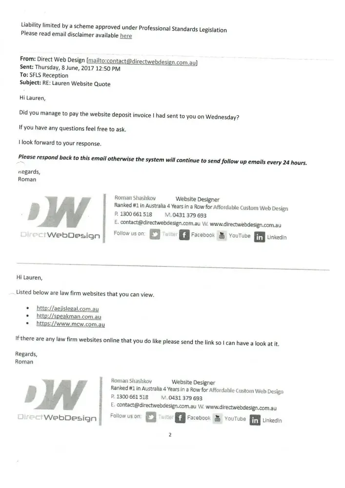 The guy that runs DirectWebDesign.com.au and YouGoDesigns.com. au is a scammer. His name is Roman Shashkoff of 24 Howey Rd Pakenham. Never use his services. He will take your money and run! Be very aware!