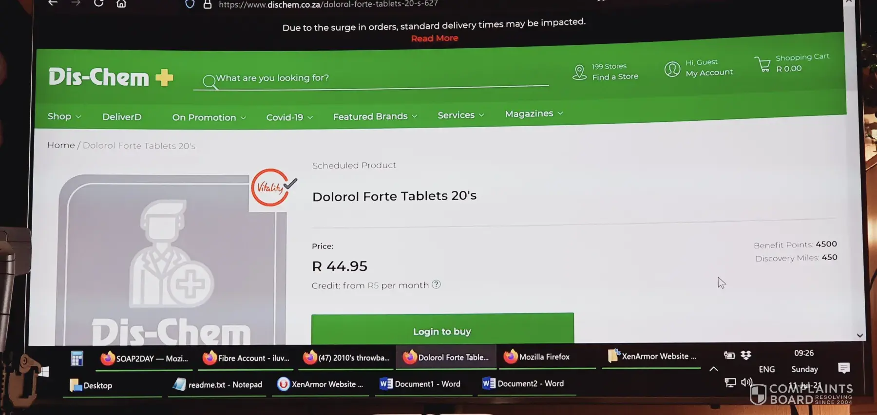 I emailed a big order through to Benmore Gardens DisChem, 3 days ago (7th Jul 2021). They didn't deliver the day before yesterday, so I emailed them asking why my order wasn't delivered. The lady (Linda) replied, stated that they had too many COVID cases and couldn't deliver (i have email proof).