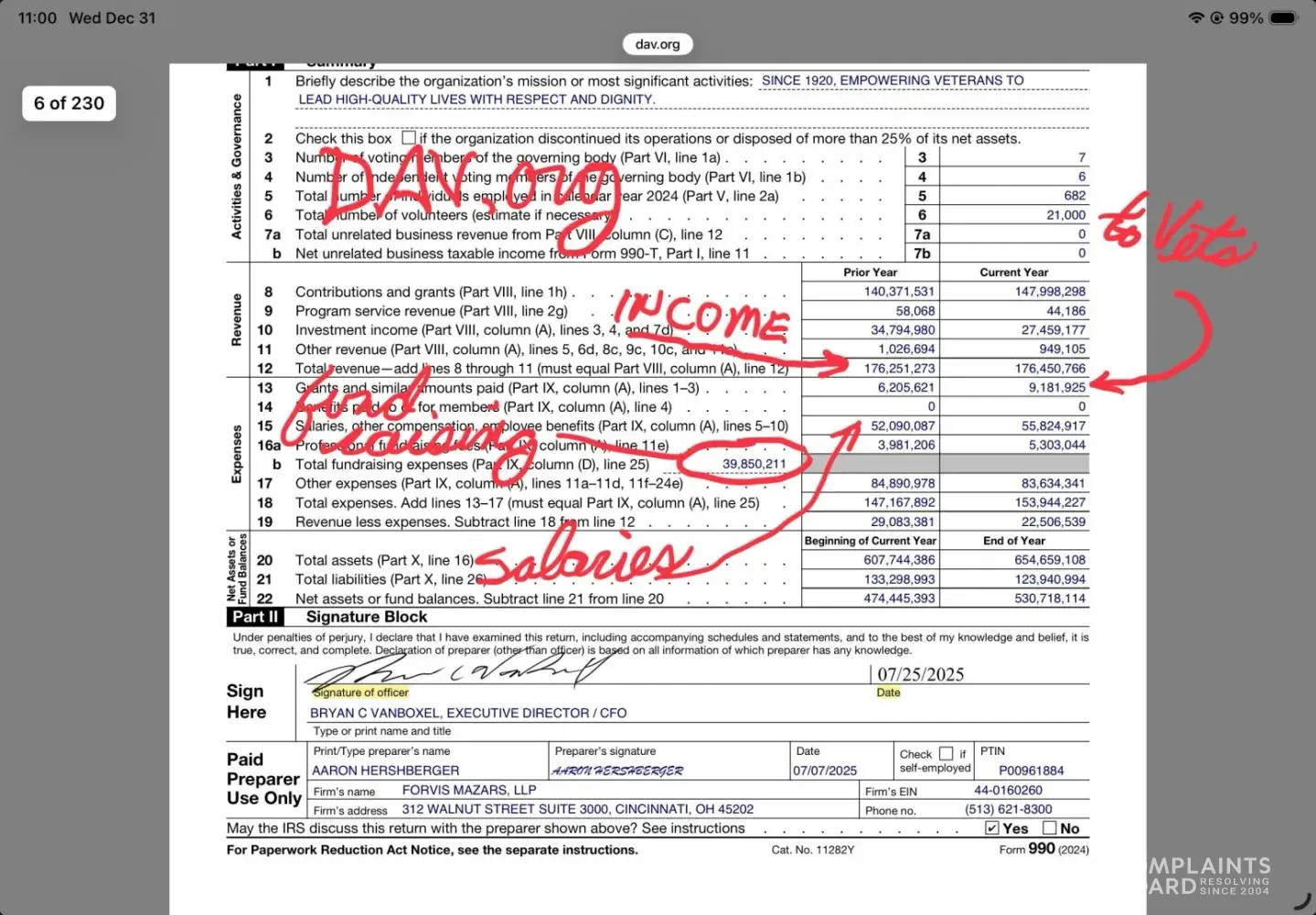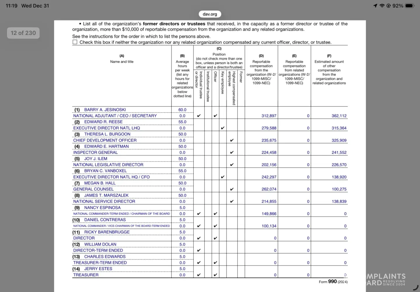 This article from 2021 also goes to showcase how much they pay themselves: https://paddockpost.com/2022/10/30/executive-compensation-at-disabled-american-veterans-dav-2021/