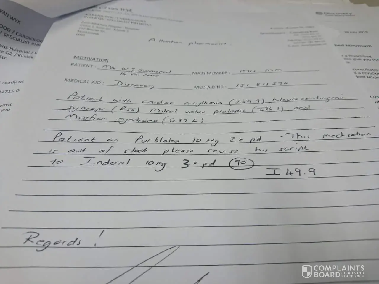 Discovery Health Medical Aid will not supply a 13 years marfan patient with the meds he needs