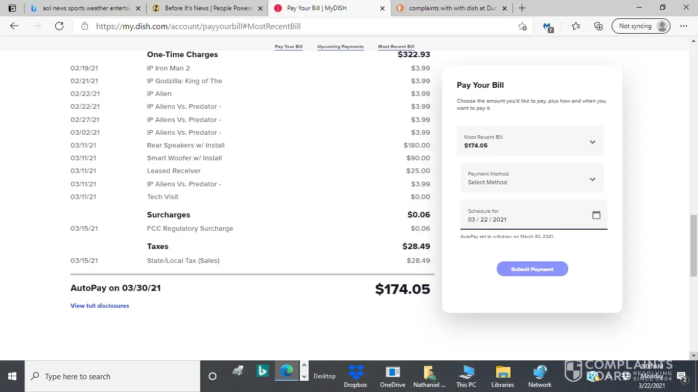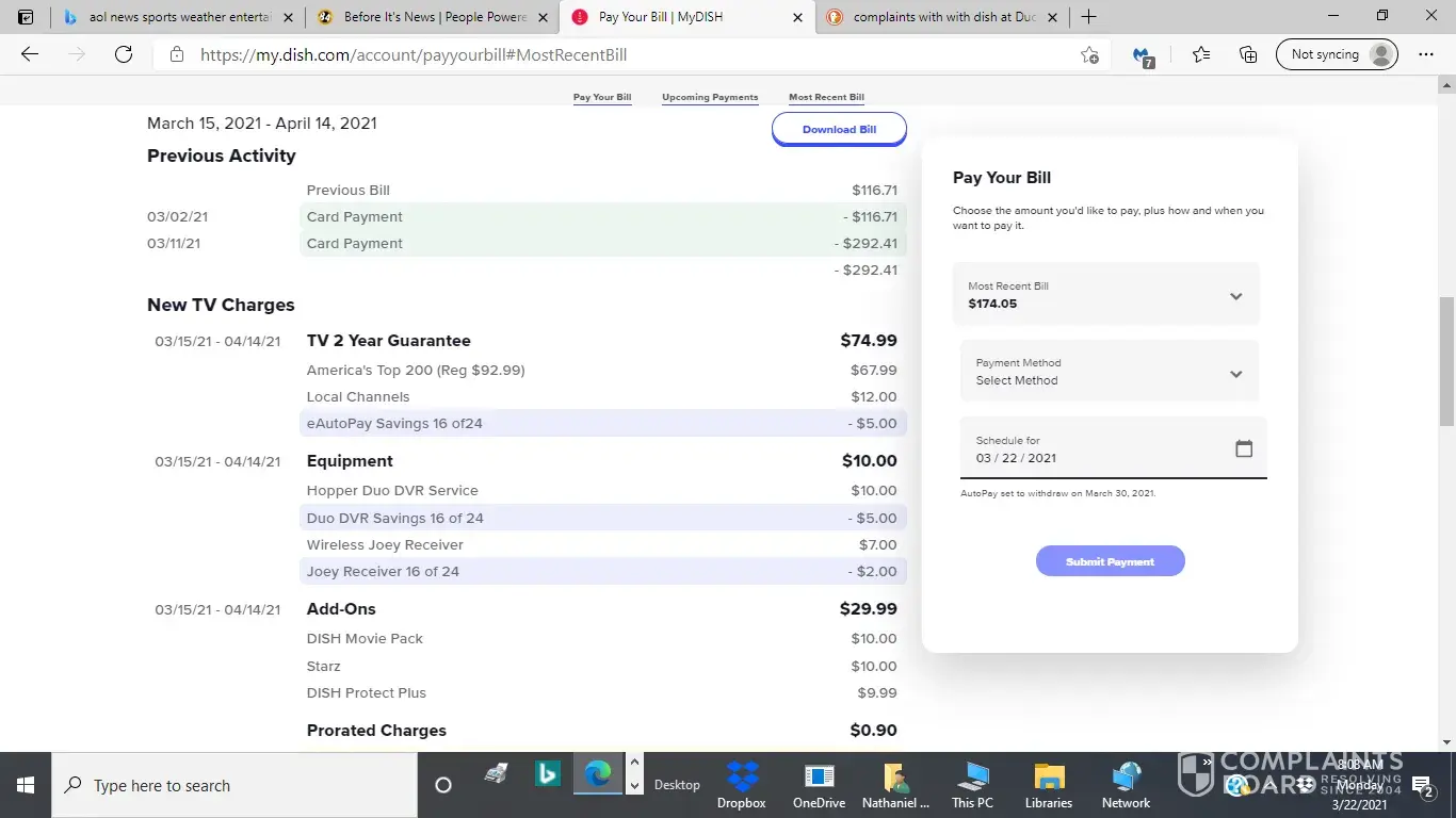 DISH Network Late charges and failure to sign me up for autopay....twice. They told me to call my bank because it was on their end. I did and it wasn't.