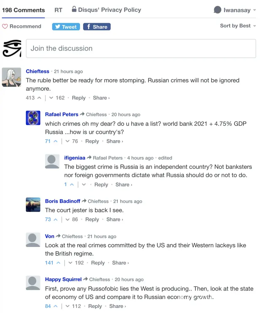 Disqus Disqus comment section on RT.com