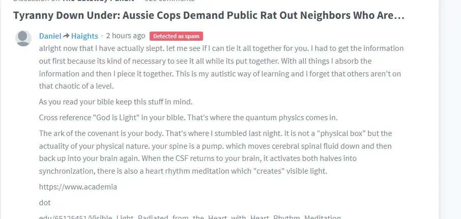 The automated screening system consecutively marking my comments as spam, makeing it impossible to express my opinion in an argument, even though i have never used abusive language of any kind. This is against free speech!