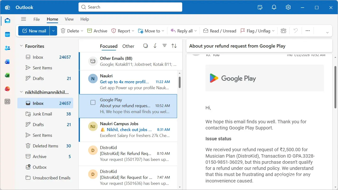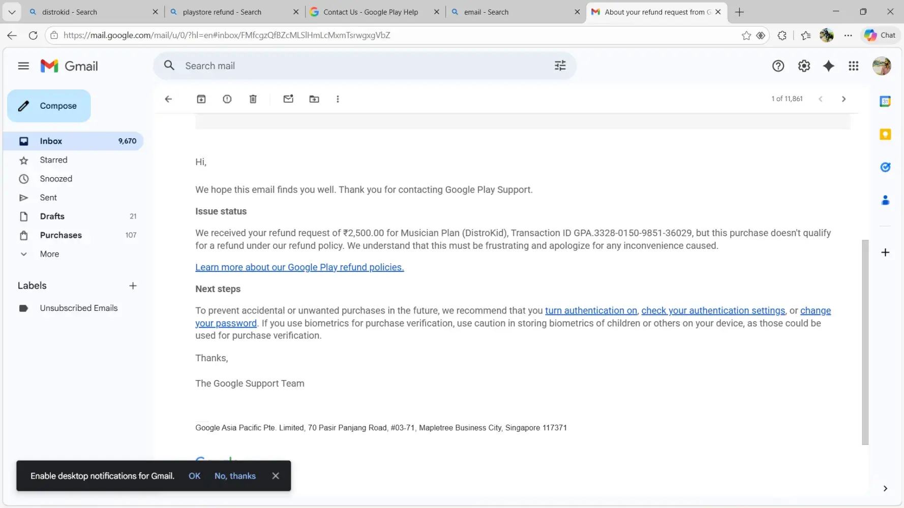 Hi DistroKid Support, I originally subscribed to the Musician plan ($24.99/year) on January 10, 2026. On January 22, 2026, I upgraded to Musician Plus ($49.99/year) following advice from your support agent (named Jia and others). The agents told me to cancel the previous Musician subscription in Google Play and request a refund there, which I did. Google...