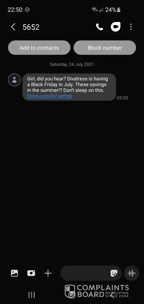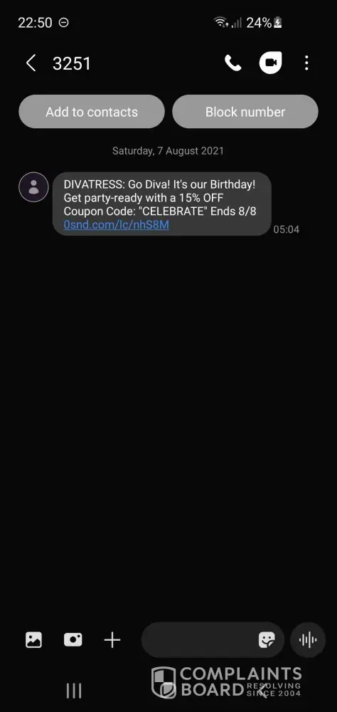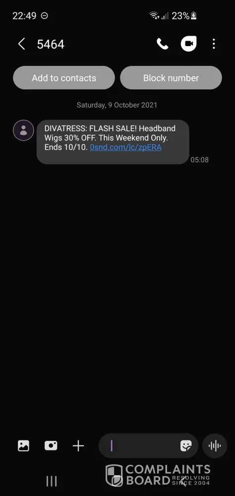 I have never purchased from Divatress but they have kept my phone number on file and continued to contact me to make purchases when I never consented to this. It's likely they will have my personal phone number from when I would have attempted to place an order but once they stated they couldn't ship to my address I couldn't finalize that order and completely exited from their website.