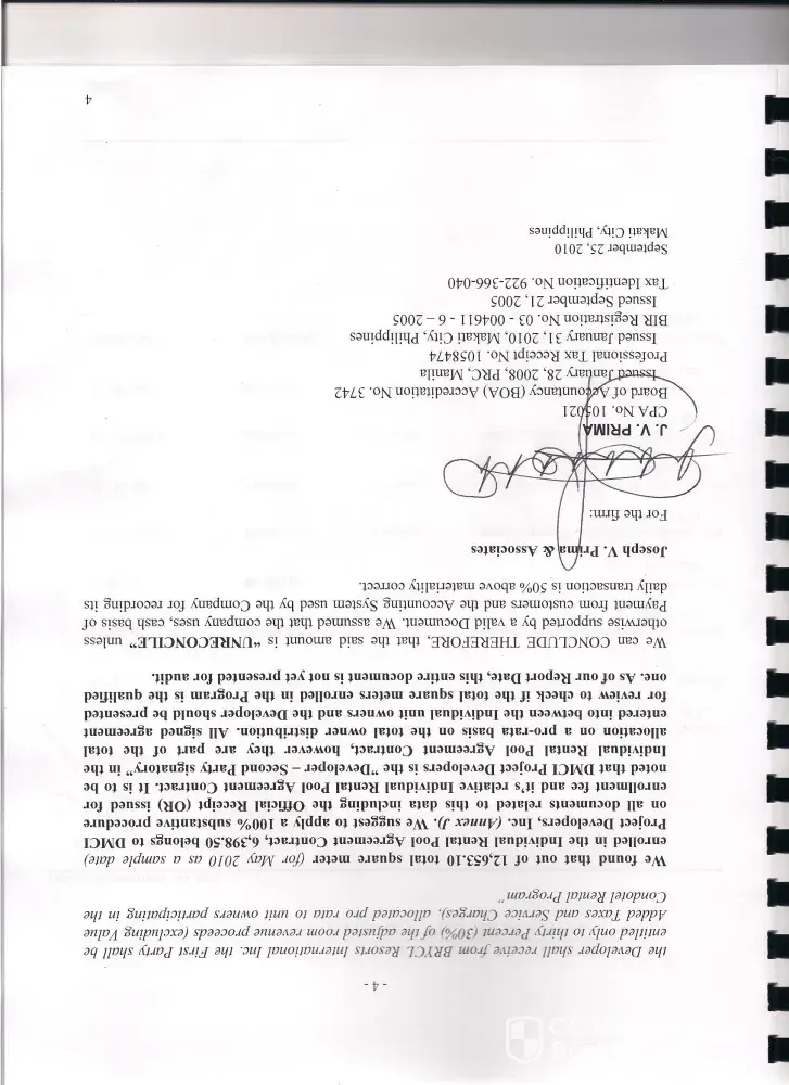 They sold alta vista boracay to us as an investment. DMCI marketed and projected that the monthly income would be around 30, 000 pesos. We invested aroud 4 million pesos for the condotel unit. For the last 3-4 years [protected]) of its operation we only receive 2-3 thousand pesos a month. Worst on audit by Joseph Prima DMCI PDI hotel for its 6 months of operation cannot account 6 million pesos. DMCI and its sister company are the only one profiting from this investment scam. Lately the monthly individual rental pool share of the unit owners are not being given on time (three- 4 months delay).
