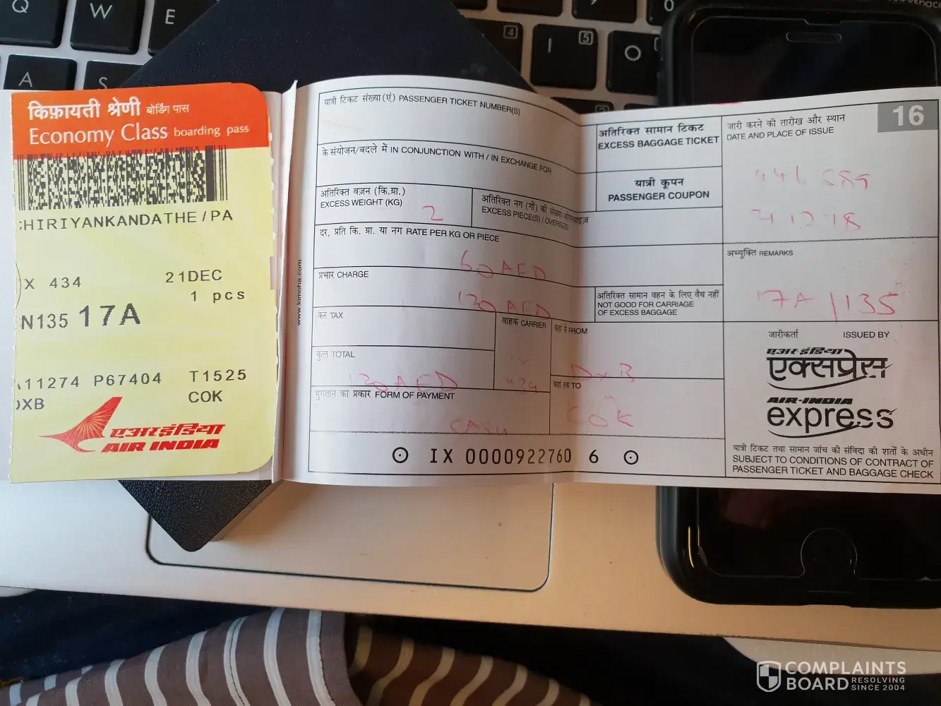 After a lot of haggling, the Dnata staff settled on 2 kgs excess and I was therefore overcharged UAE Dirham 120/- for 2 kgs excess baggage. I had no choice but to pay up UAE Dirham 120/- (Receipt No. IX [protected] REF: 449044 dated October 30, 2018) to board the flight when I had only 12 kgs of baggage as compared to 37 kgs (30kgs +7kgs) allowed by Air India Express.